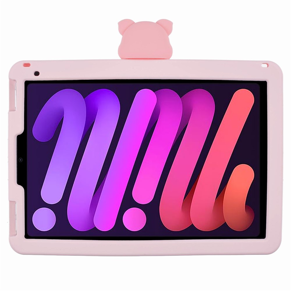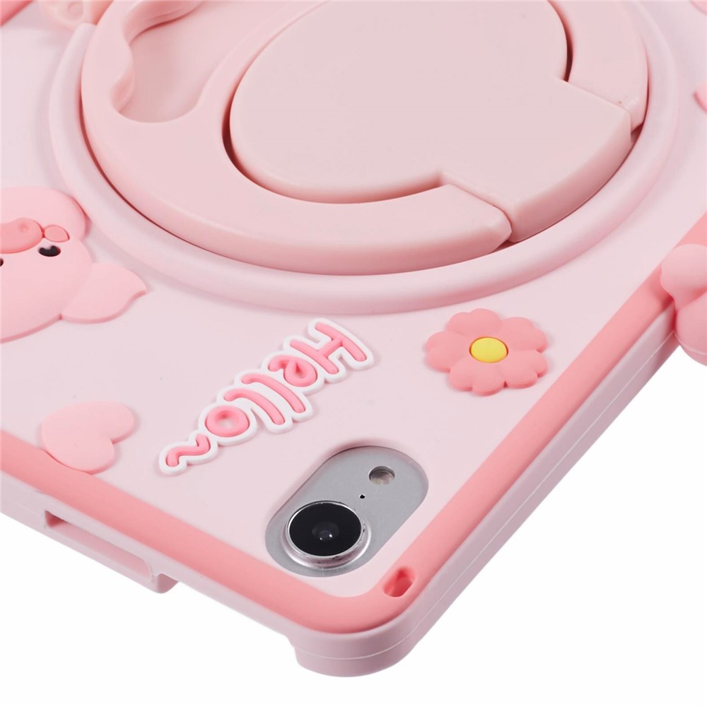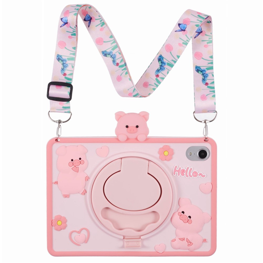 For iPad mini (2024) / mini (2021) Silicone Case with Shoulder Strap Kickstand Cartoon Pig Tablet Cover
