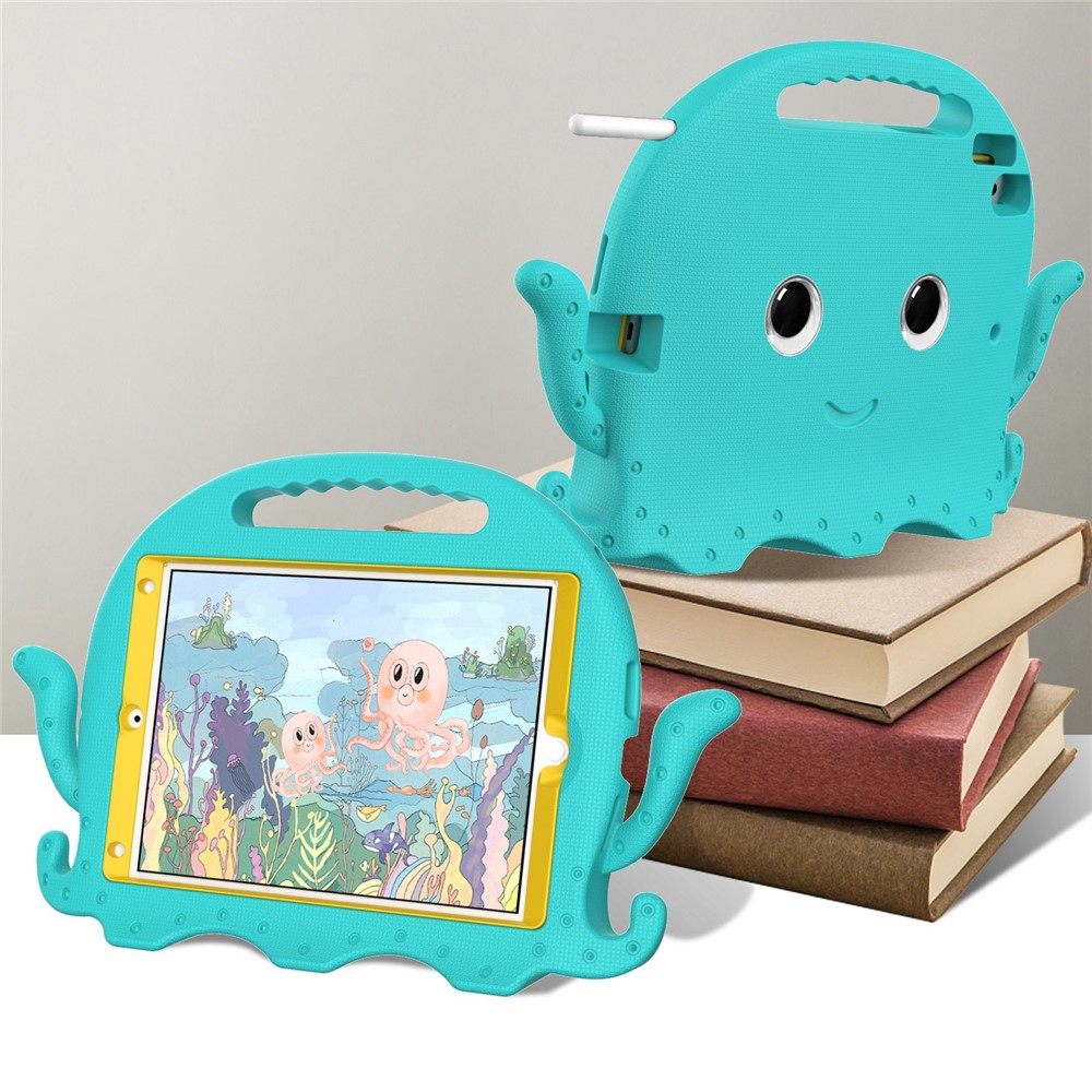For iPad Pro 10.5-inch (2017)/iPad Air 10.5 inch (2019)/iPad 10.2 (2020)/(2019)/(2021) Cute Octopus Pen Slot Design EVA Case Impact-resistant Tablet Cover with Handle and Shoulder Strap – Baby Blue