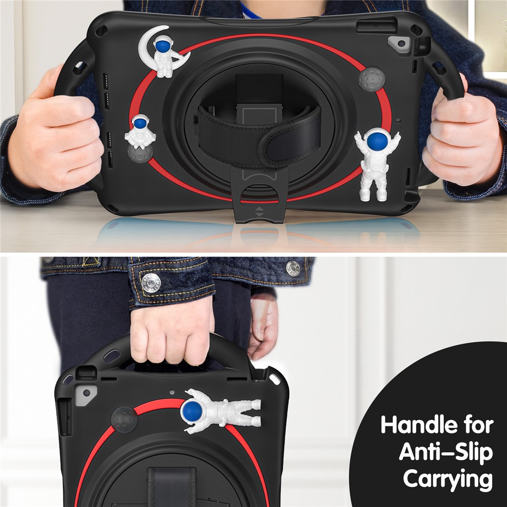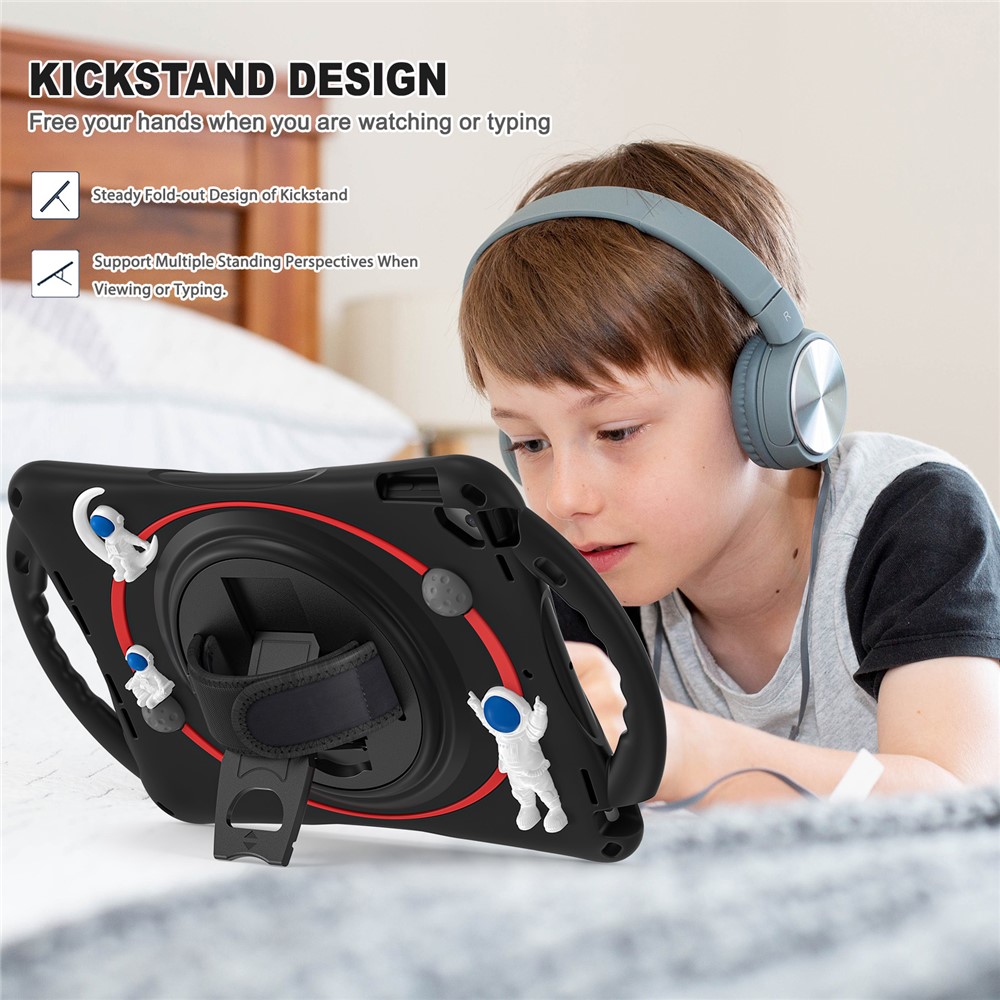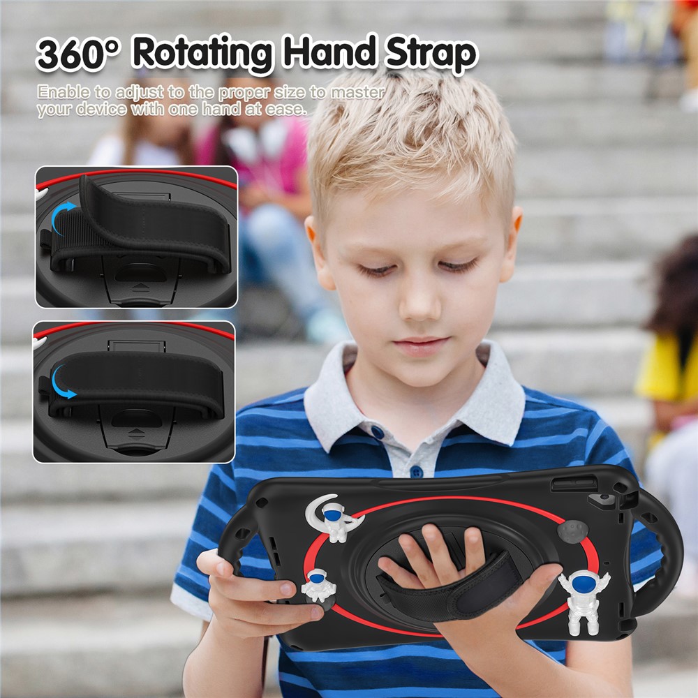 Integrated 360-degree rotary kickstand with a magic tape hand band frees your hands for landscape or portrait viewing