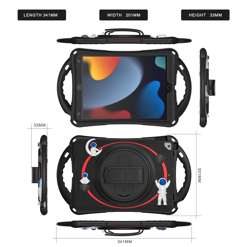 The back of the tablet case is designed with a pencil holder to store your pencil device (Not Included)