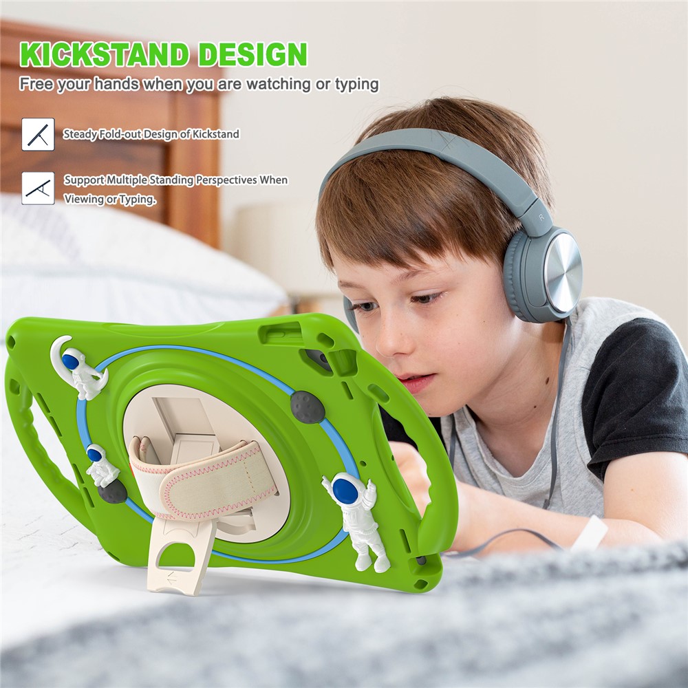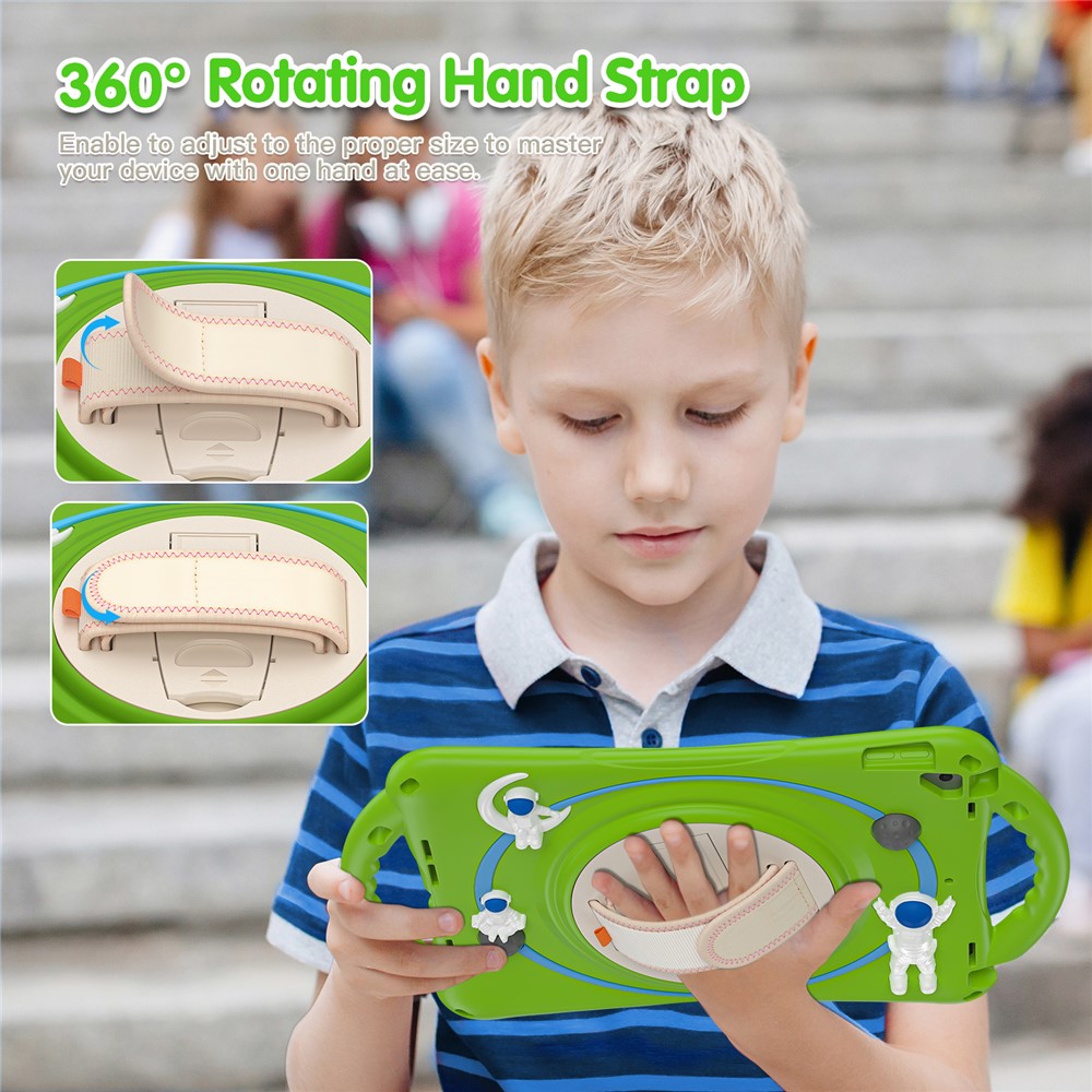 Integrated 360-degree rotary kickstand with a magic tape hand band frees your hands for landscape or portrait viewing