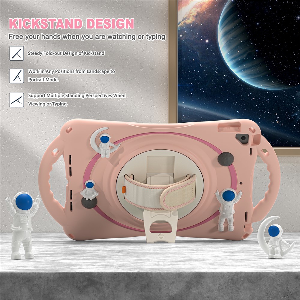 Integrated 360-degree rotary kickstand with a magic tape hand band frees your hands for landscape or portrait viewing