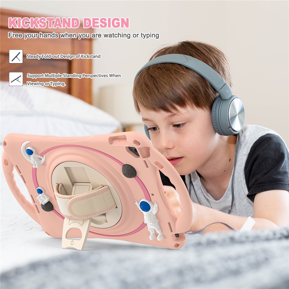 The back of the tablet case is designed with a pencil holder to store your pencil device (Not Included)
