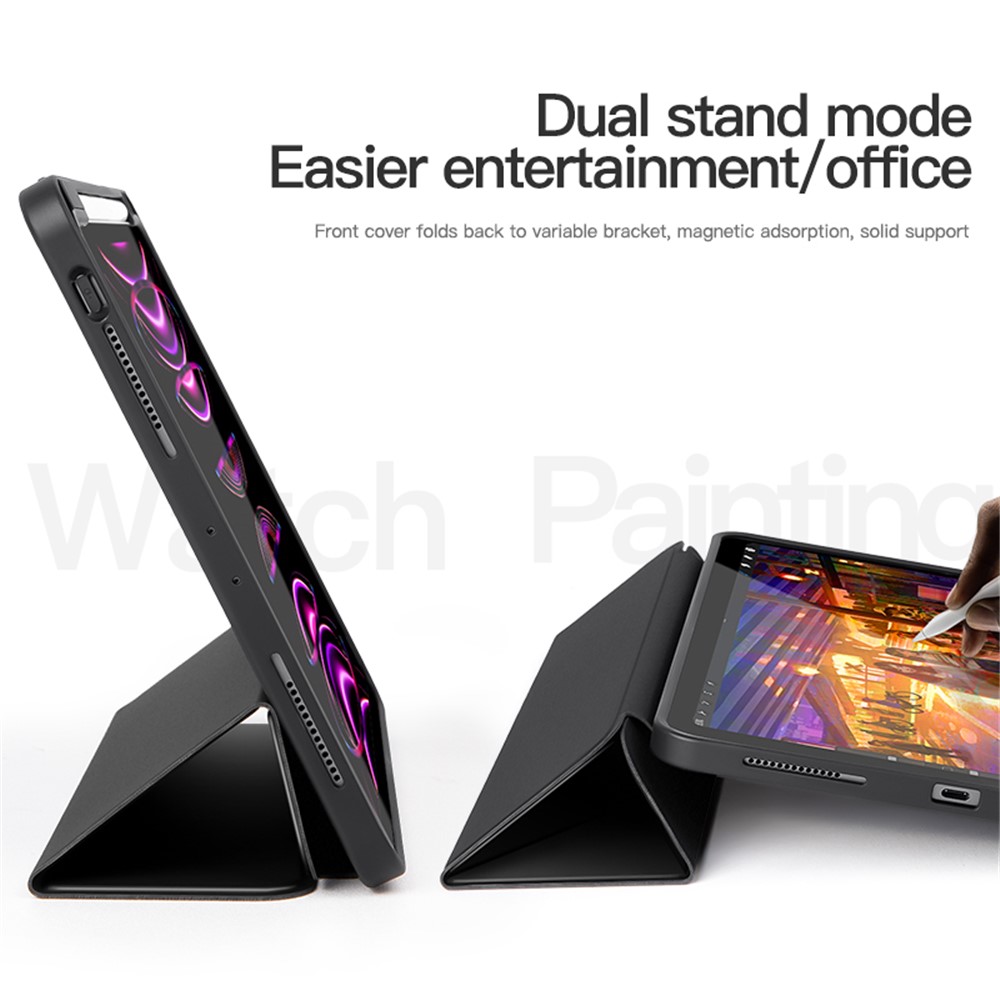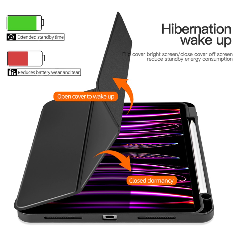 Tri-fold cover offers a sturdy and versatile stand for viewing and typing