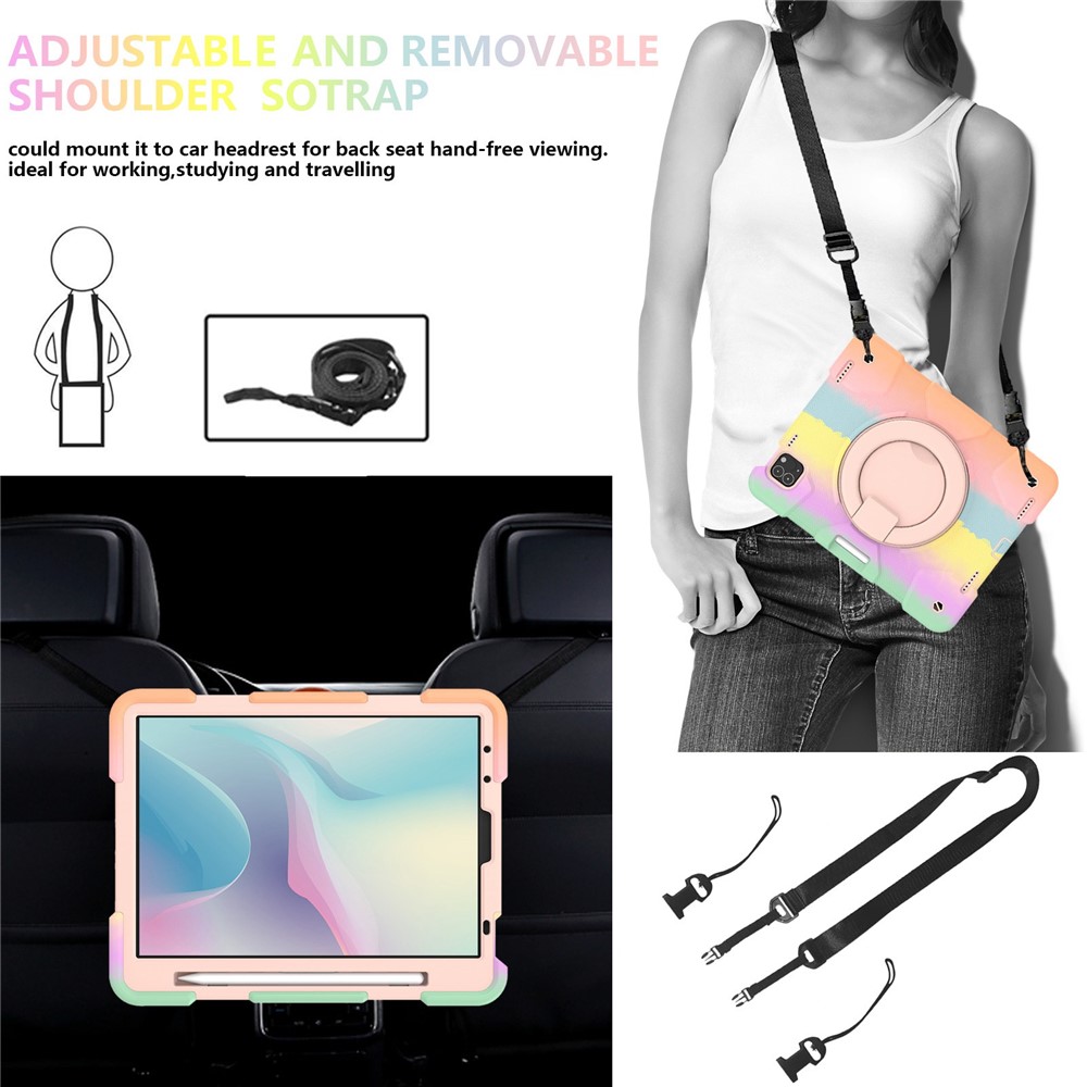 - With Kickstand & Shoulder Strap: The Kickstand Case makes it much more comfortable for typing, watching videos, Internet surfing, and reading while keeping both your hands-free & avoids any joint pain, not only as a kickstand to use but also as a handle, which is easy to carry. The shoulder strap is adjustable and removable, which is easy to use, and convenient for hanging the tablet on your shoulder