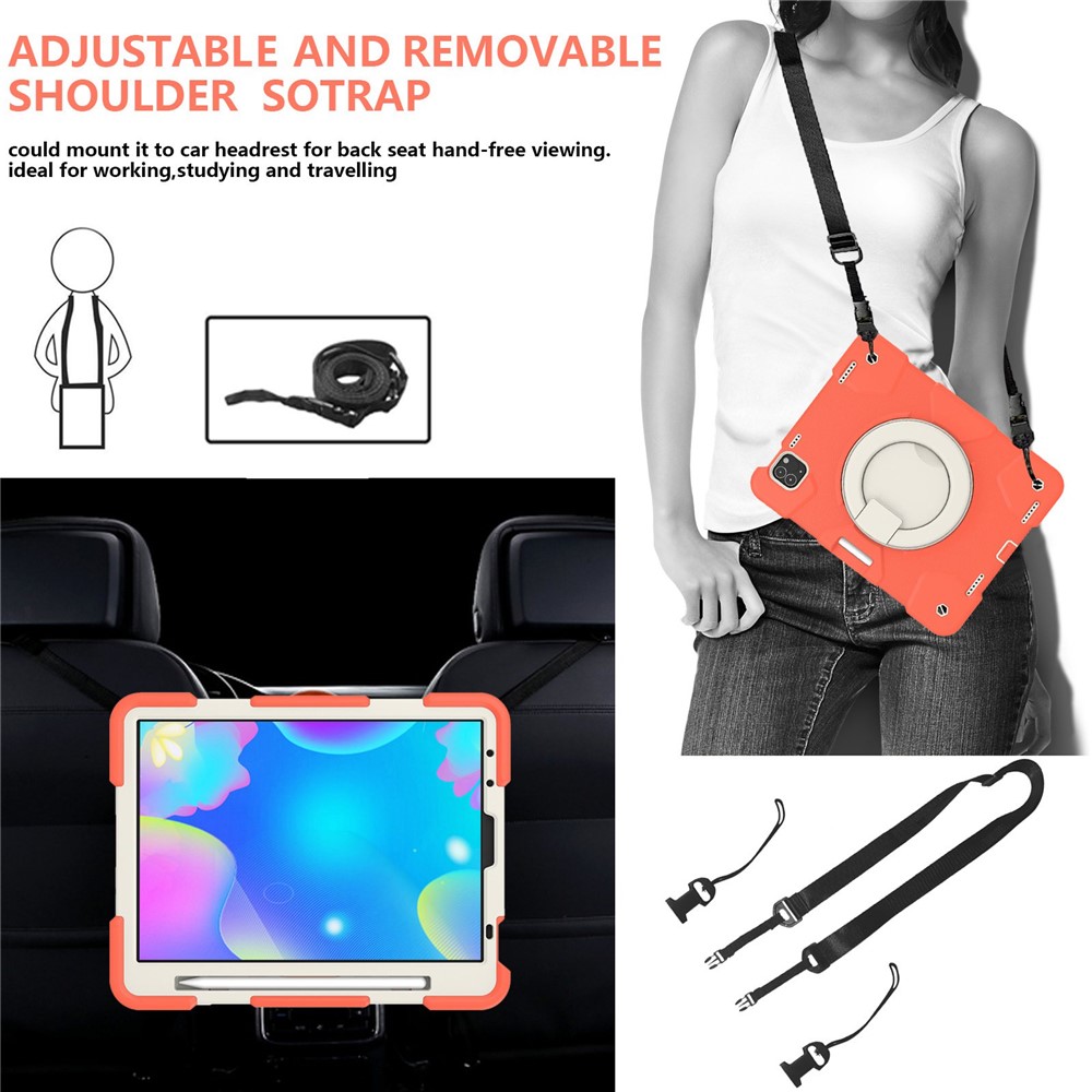 - With Kickstand & Shoulder Strap: The kickstand case makes it much more comfortable for typing, watching videos, Internet surfing, reading while keeping both your hands free & avoids any joint pain, not only as a kickstand to use but also as a handle, which is easy to carry. The shoulder strap is adjustable and removable, which is easy to use, and convenient hanging the tablet on your shoulder