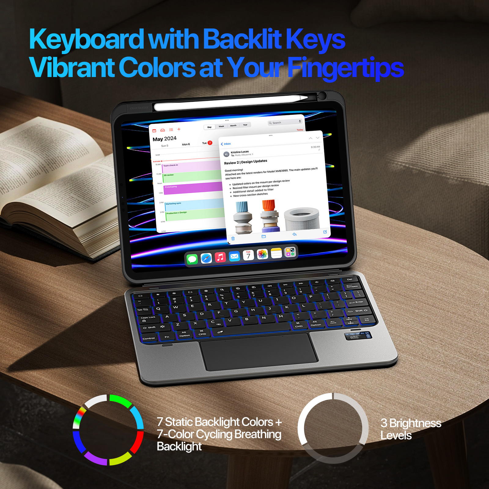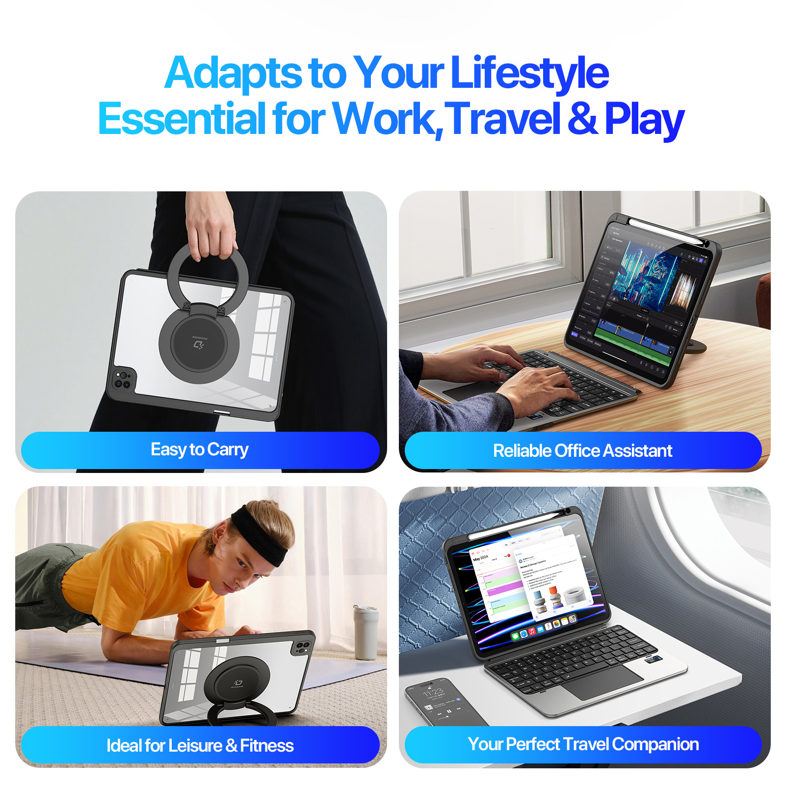 - Multi-functional Design Integrates keyboard, stand, and protective case, easily switching between work and entertainment modes with a single open-close action.