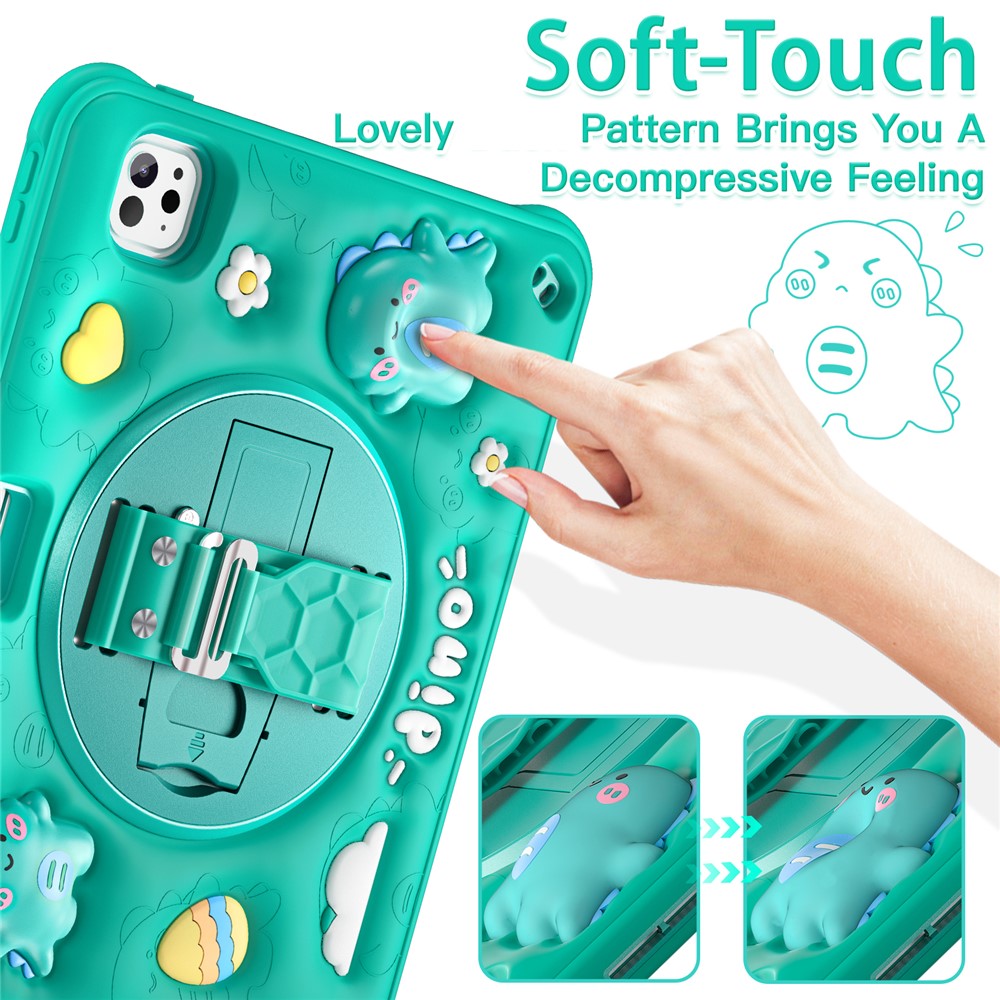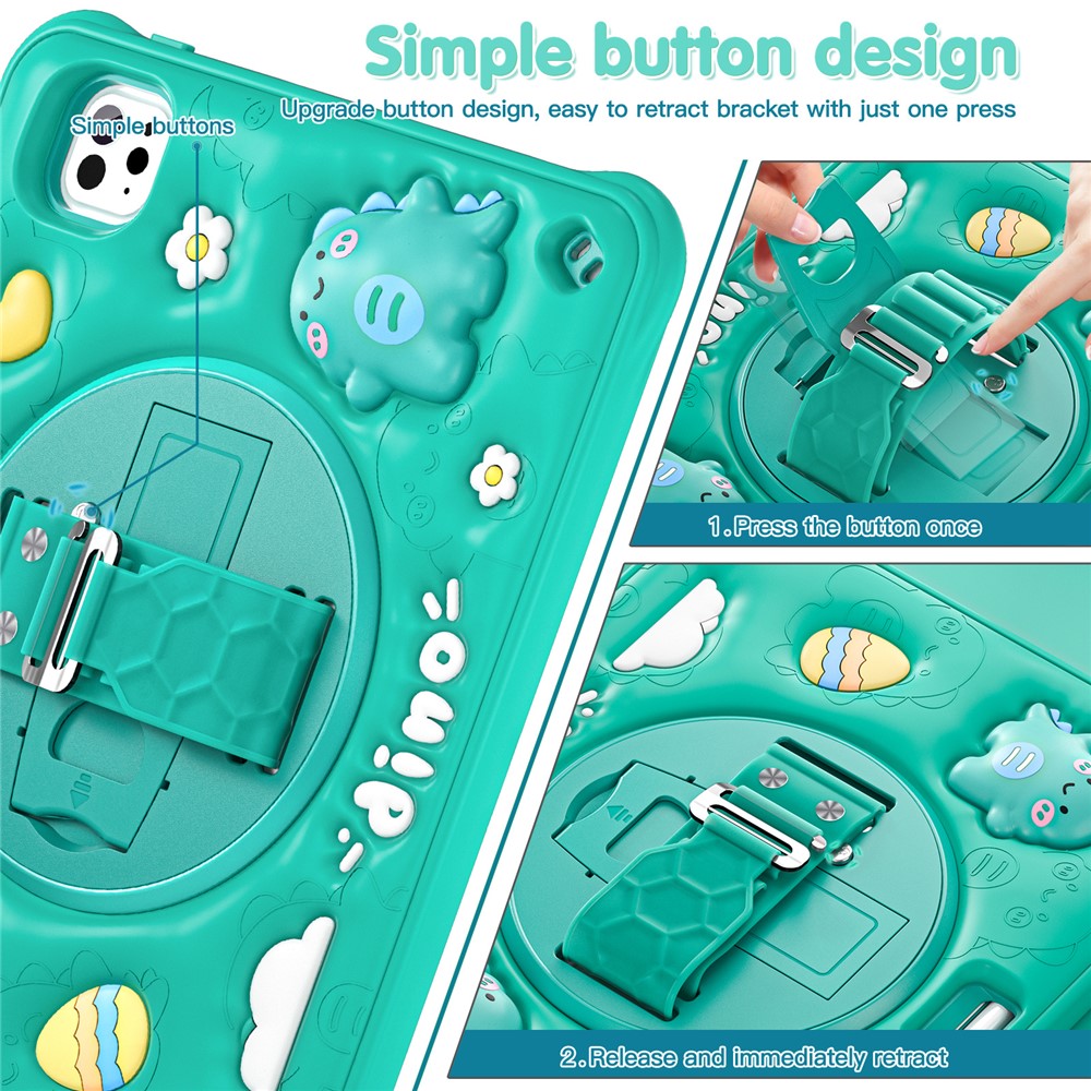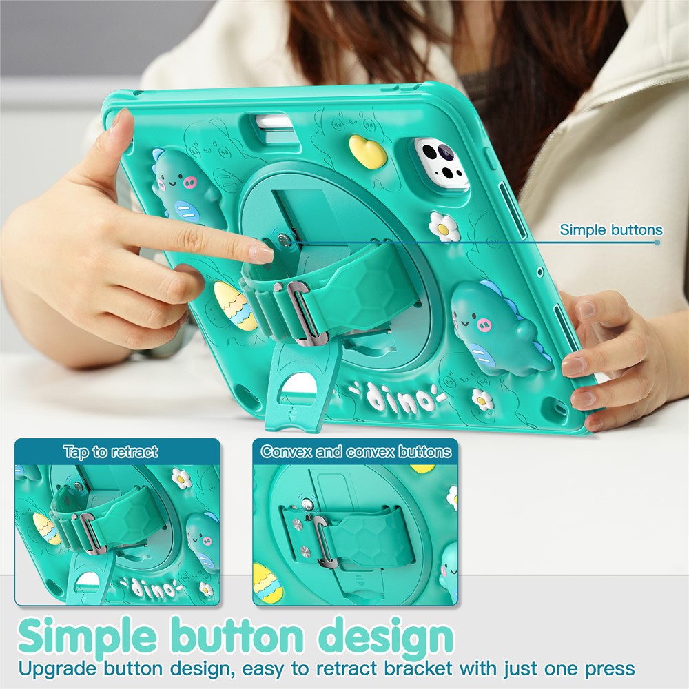For iPad Pro 11 (2025) / 11 (2024) Case Cartoon Dinosaur Hand Strap Kickstand PC+Silicone+TPU Cover