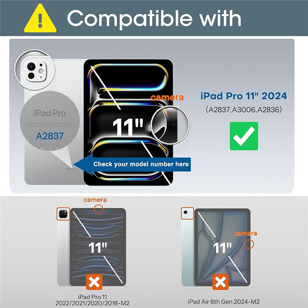 • For iPad Pro 11 (2025) / 11 (2024) Case Double-Sided Magnetic Closure Leather Smart Tablet Cover - Black