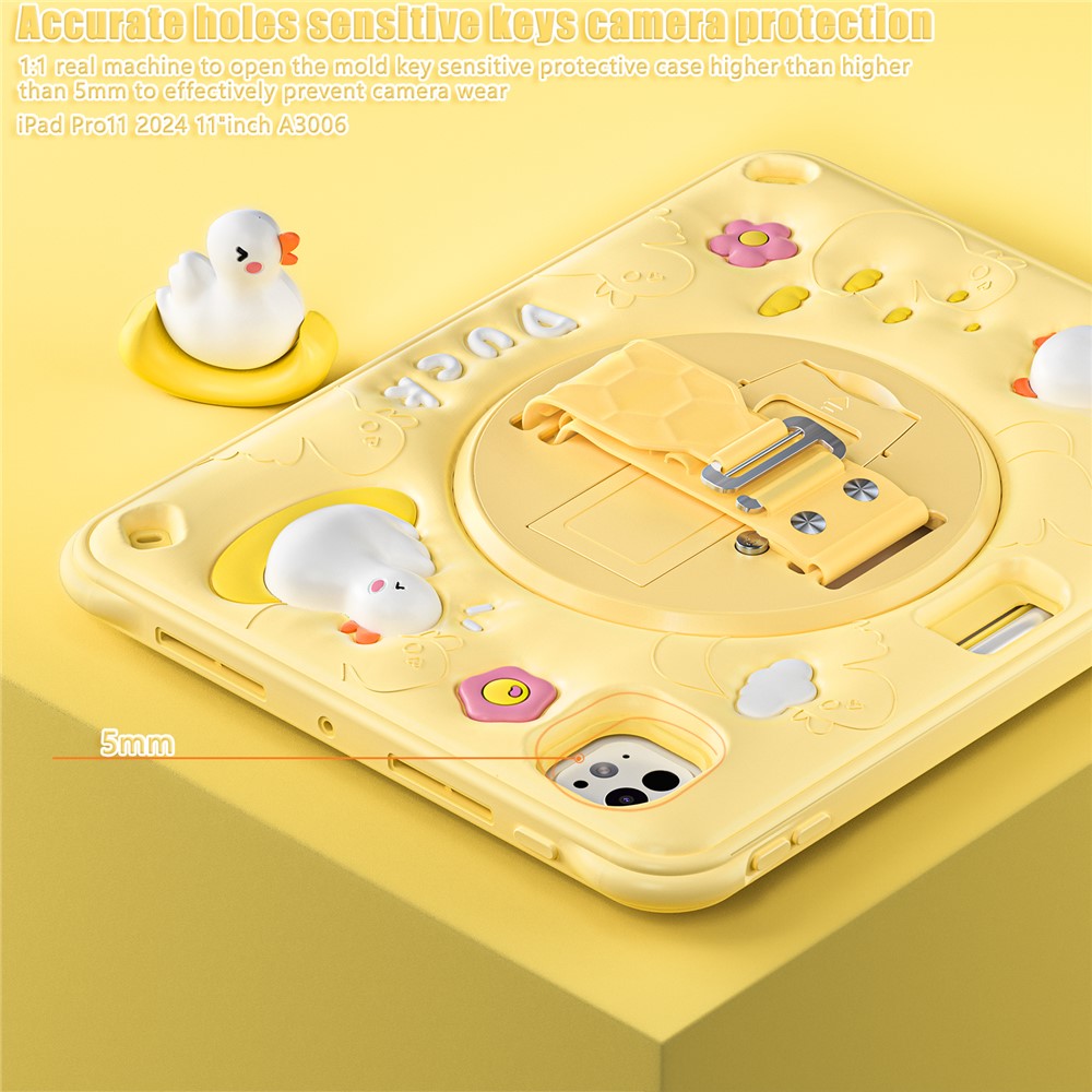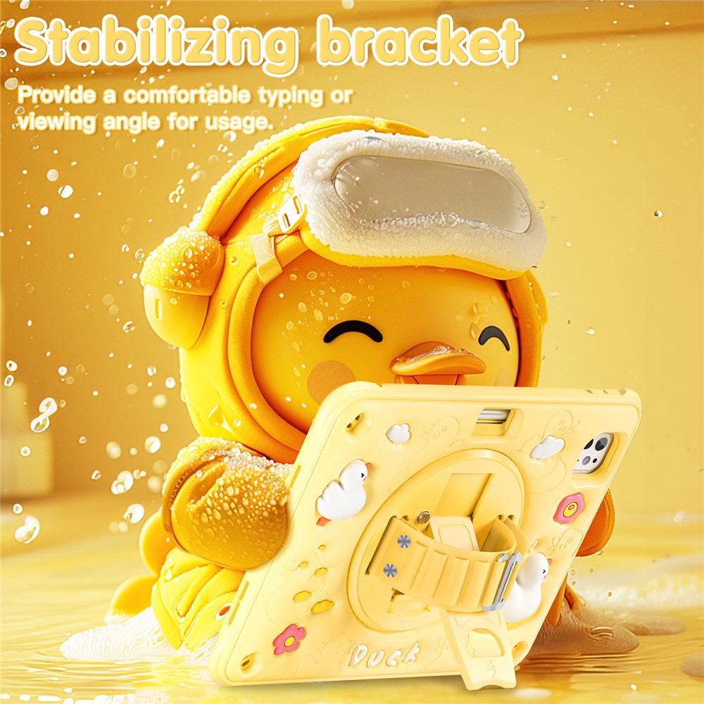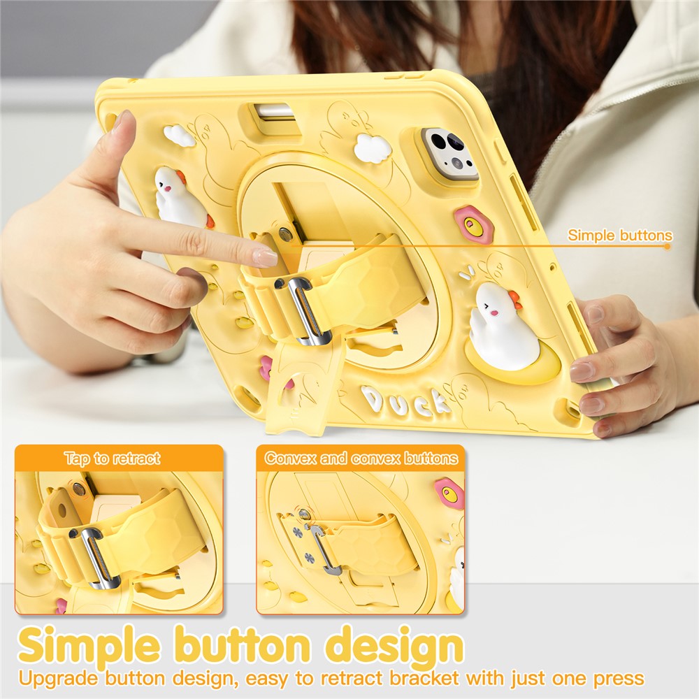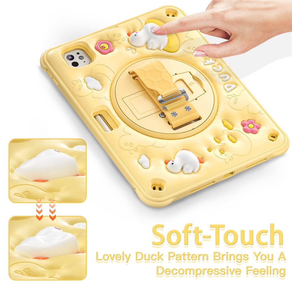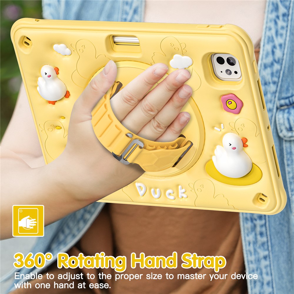 For iPad Pro 11 (2025) / 11 (2024) Case Duck Pattern Hand Strap Kickstand PC+Silicone+TPU Tablet Cover