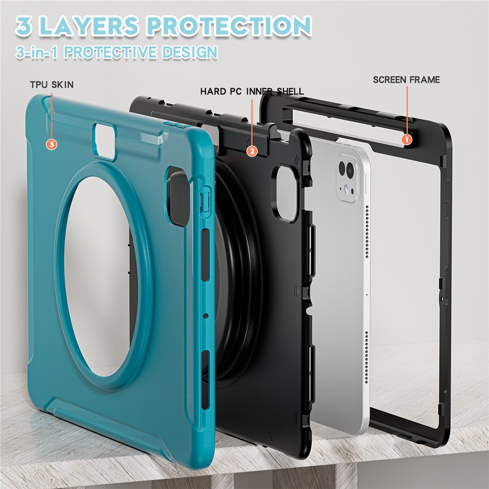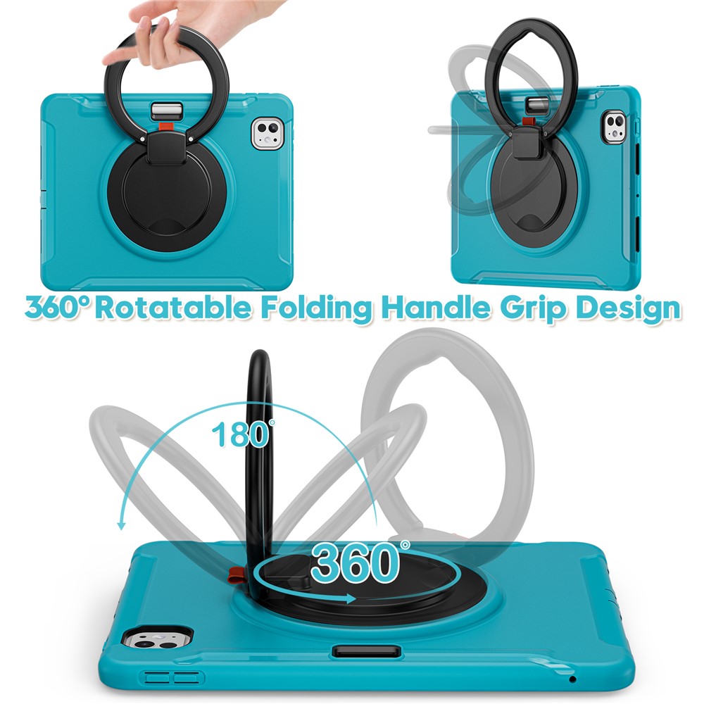 - 360-Degree Rotatable Hand Grip Kickstand: The handle grip design offers a full 360-degree rotation, allowing you to adjust it to the perfect viewing or typing angle effortlessly