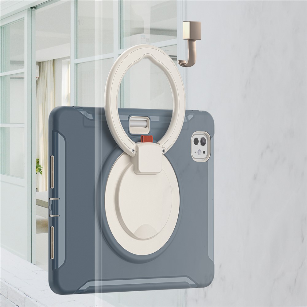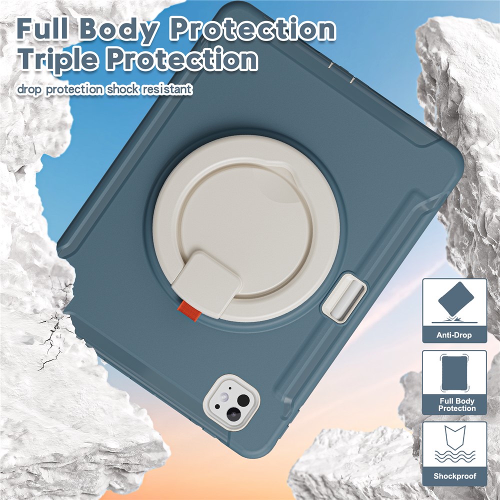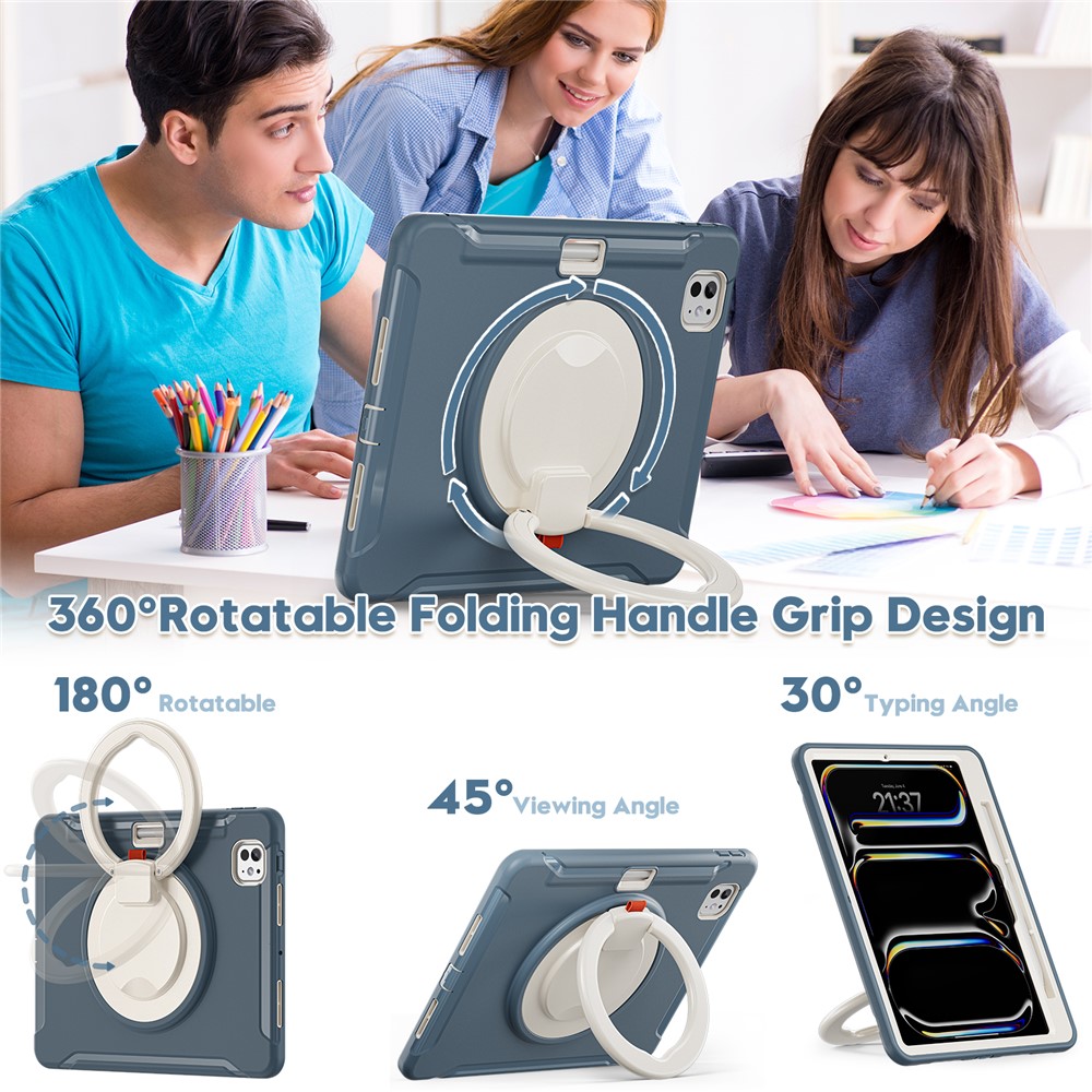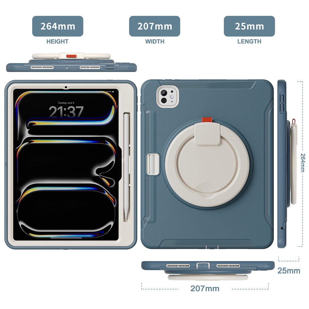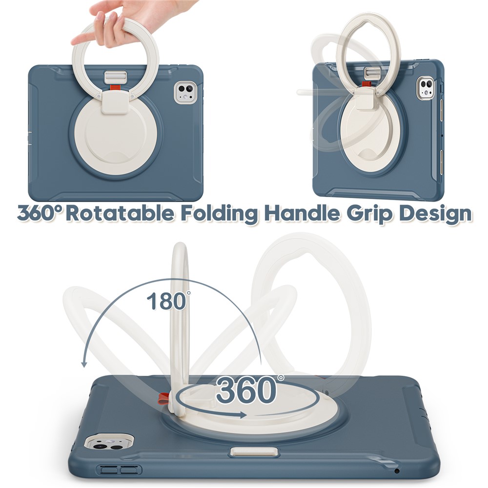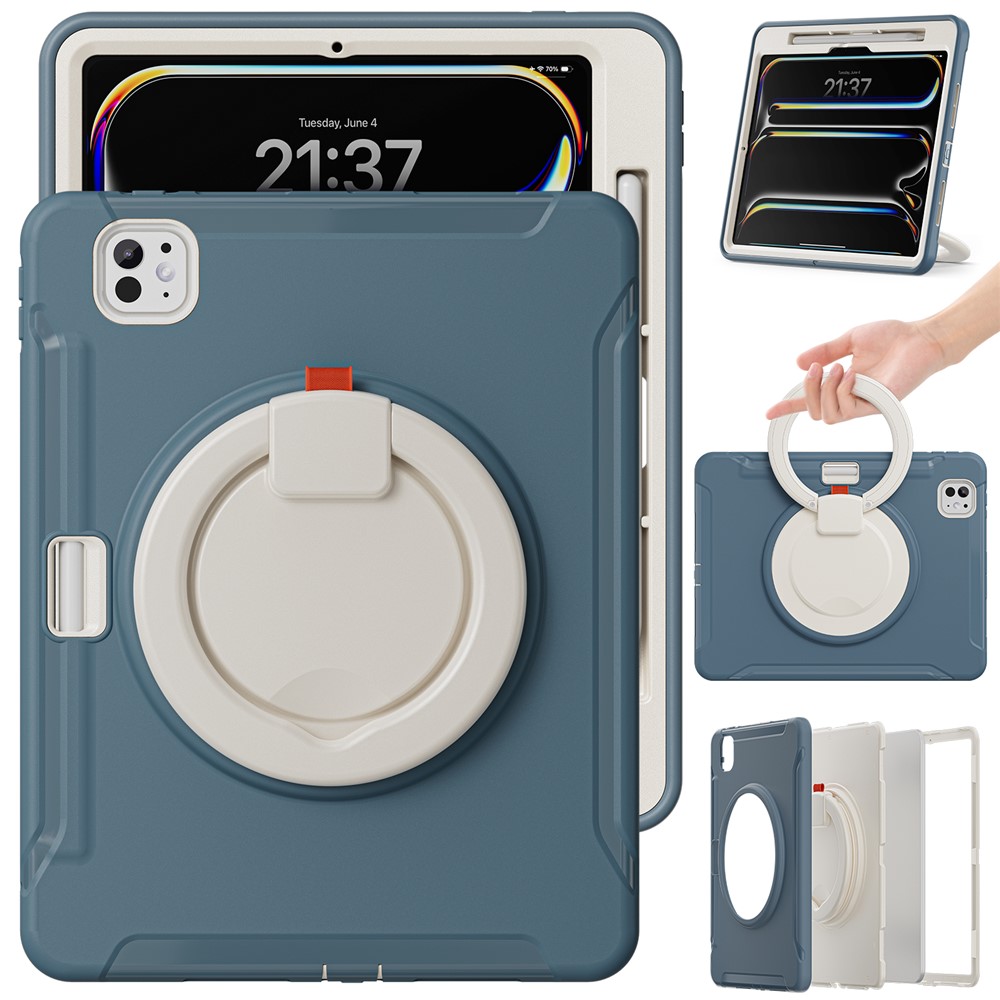 • For iPad Pro 11 (2025) / 11 (2024) Case Hand Grip Kickstand PC+TPU Cover with Pen Slot - Blue