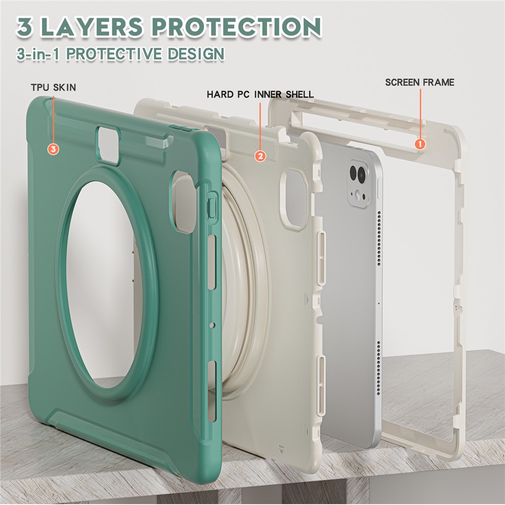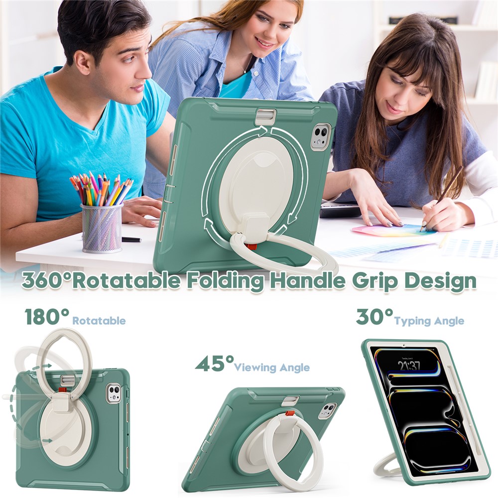 - 360-Degree Rotatable Hand Grip Kickstand: The handle grip design offers a full 360-degree rotation, allowing you to adjust it to the perfect viewing or typing angle effortlessly