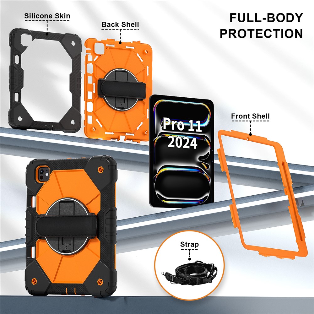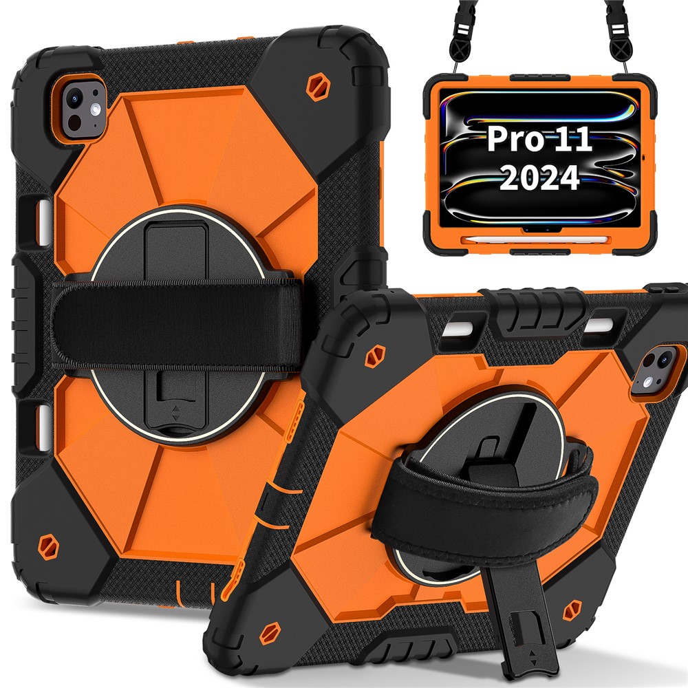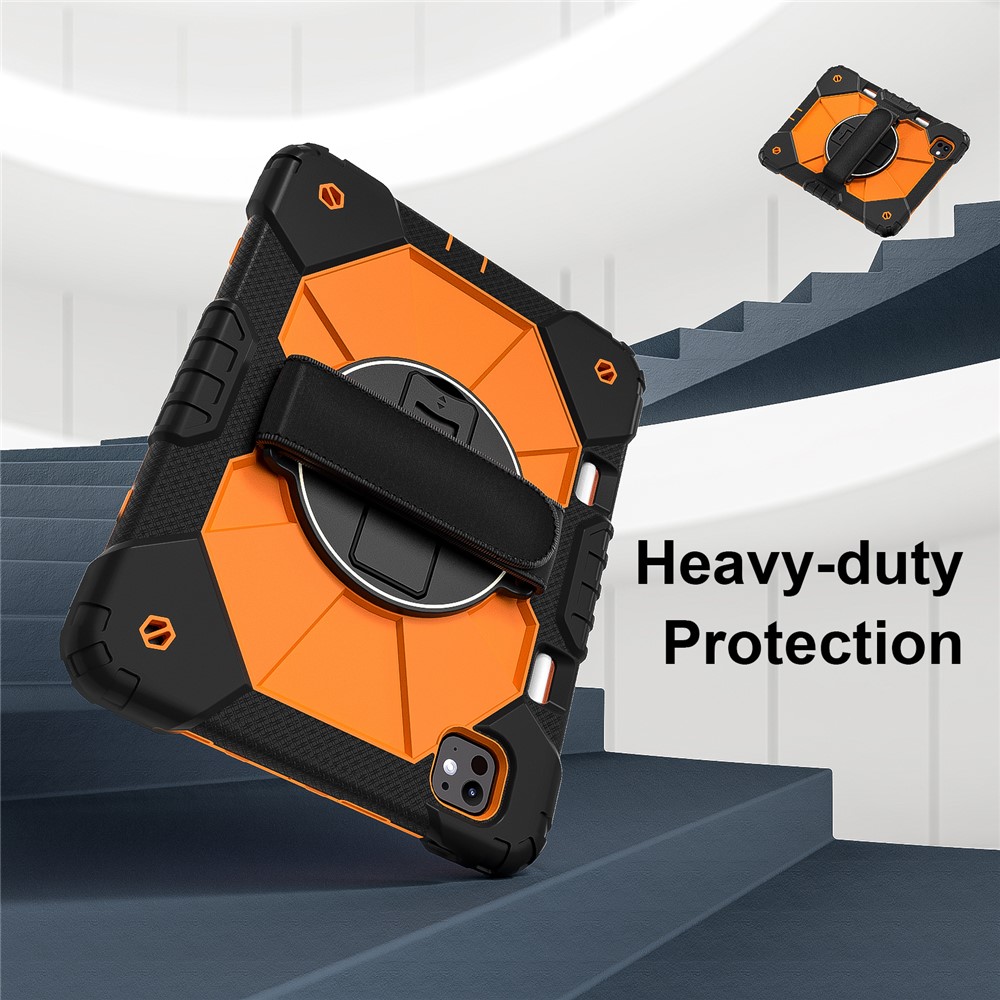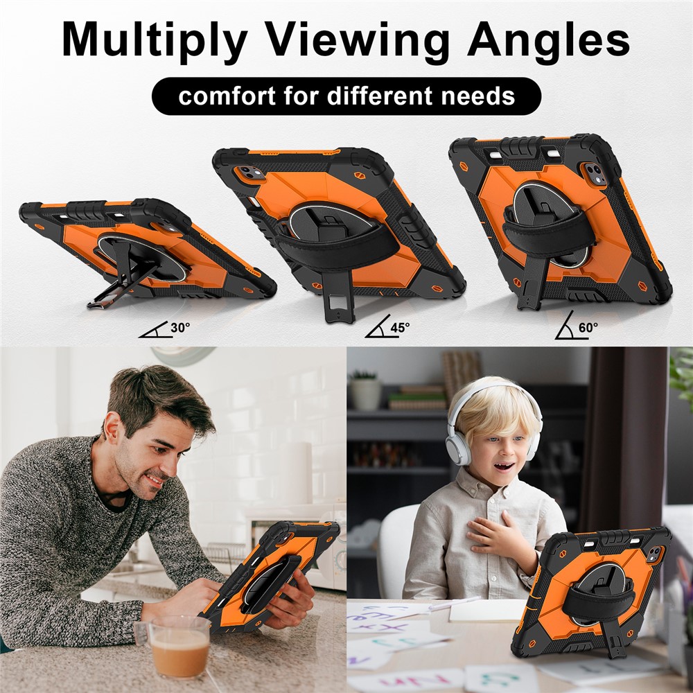 - Folding Kickstand & Hand Strap Features an integrated folding kickstand, allowing hands-free viewing; There is a handy strap on the back of the case, supporting 360-degree rotating, and you can hold your tablet in one hand