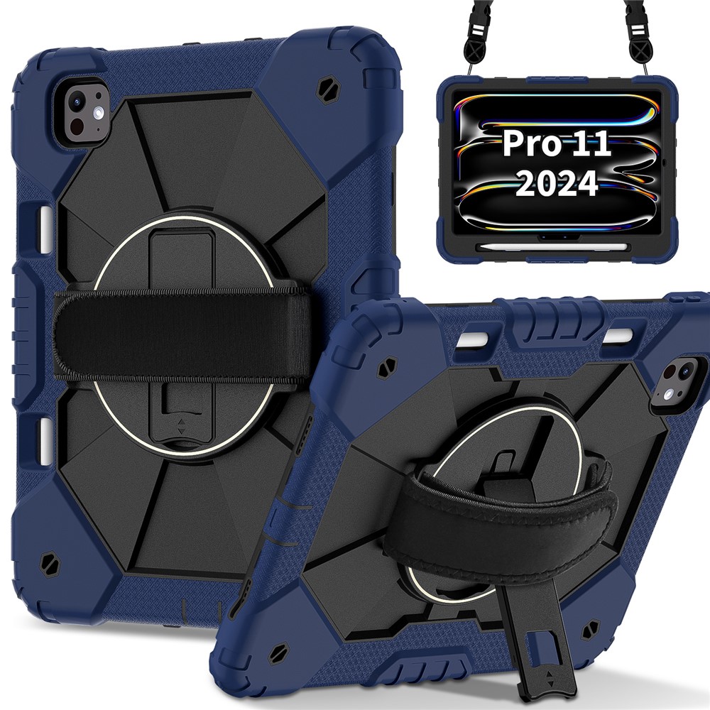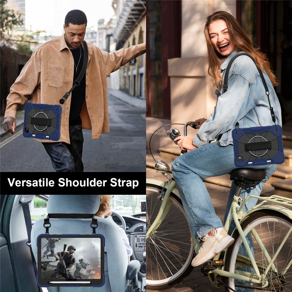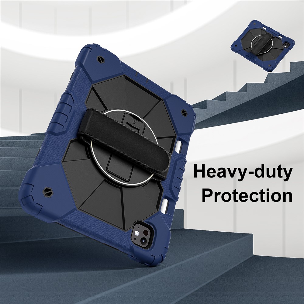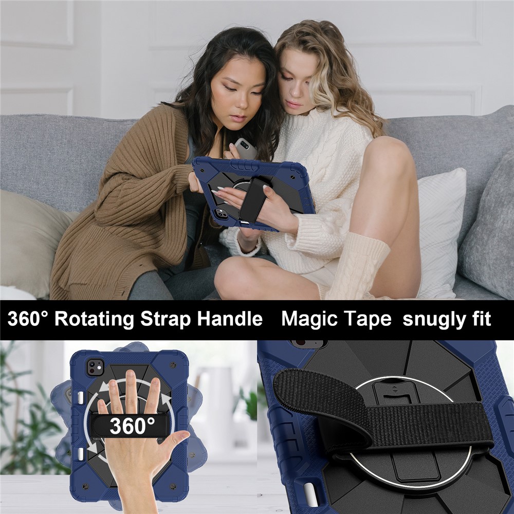 - Folding Kickstand & Hand Strap Features an integrated folding kickstand, allowing hands-free viewing; There is a handy strap on the back of the case, supporting 360-degree rotating, and you can hold your tablet in one hand