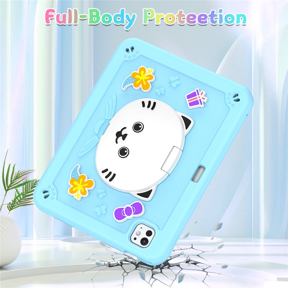 - Adorable Cat Kickstand Built-in 3-angle adjustable kickstand shaped like a cute cat — perfect for watching, learning, or video chatting hands-free.