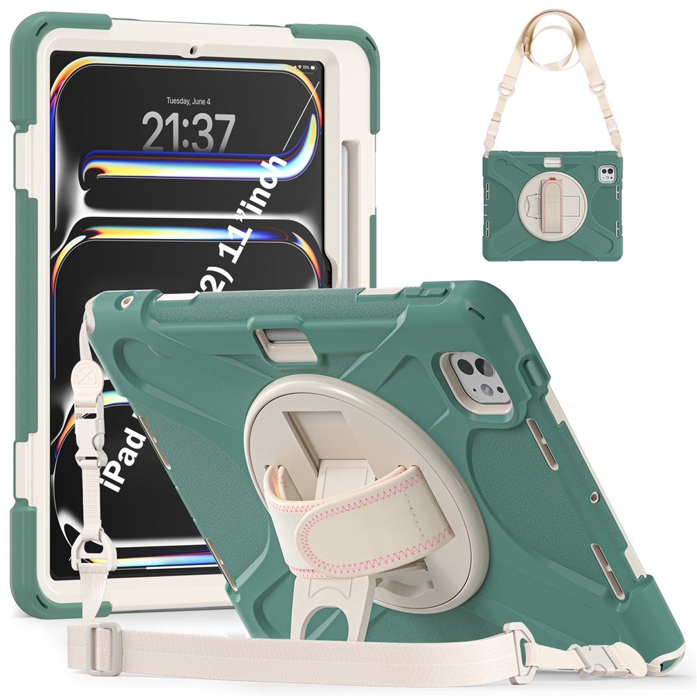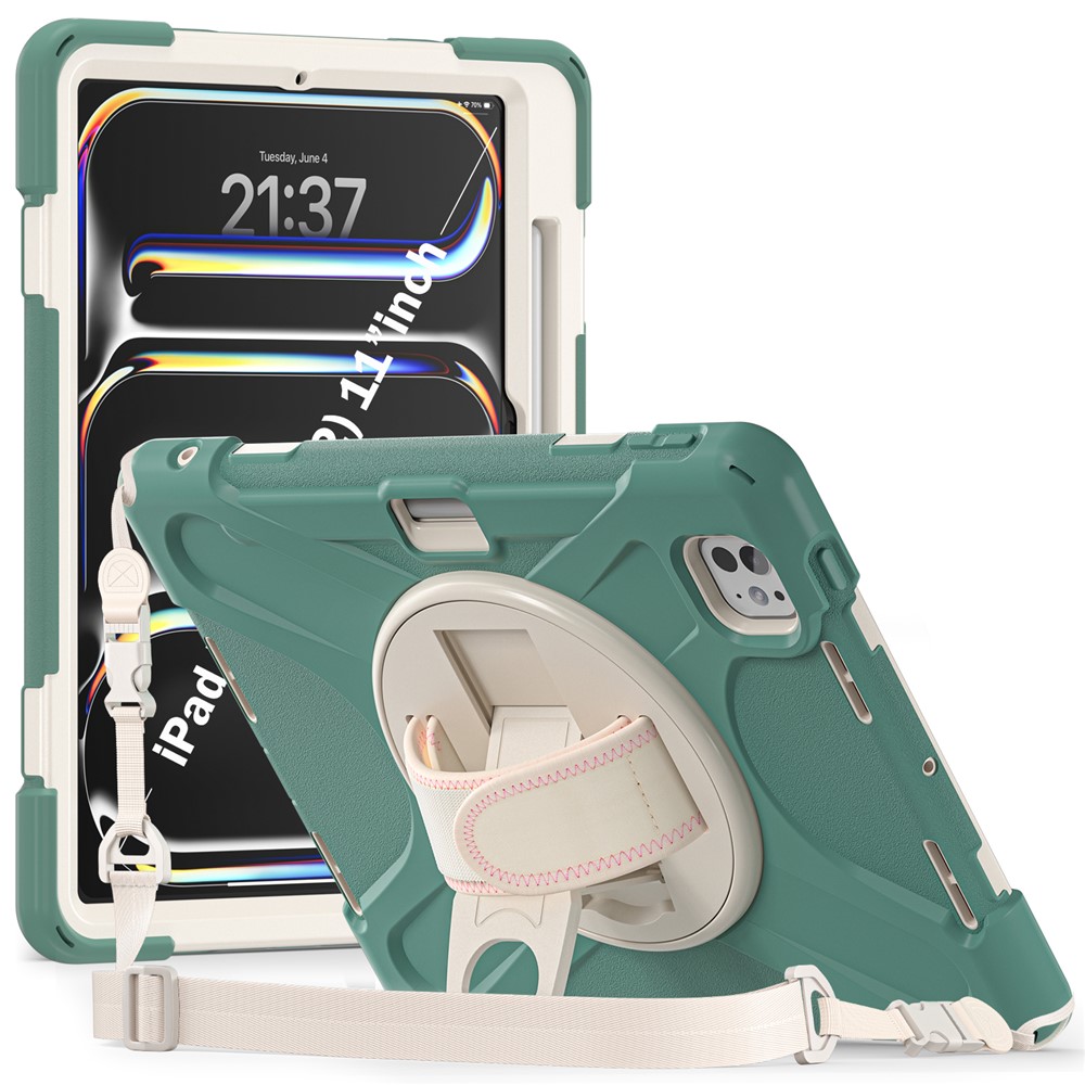- 360 Degree Rotation Kickstand Secure your hand with an adjustable hand strap and rotate your device 360 degrees for versatile viewing and handling