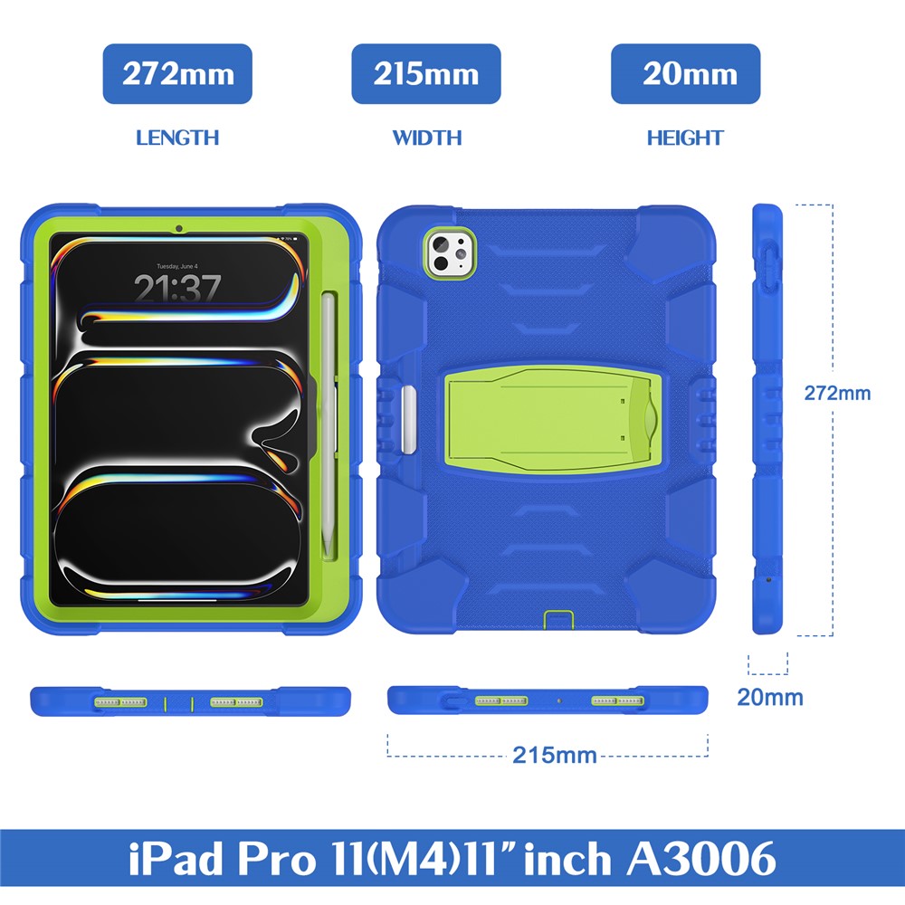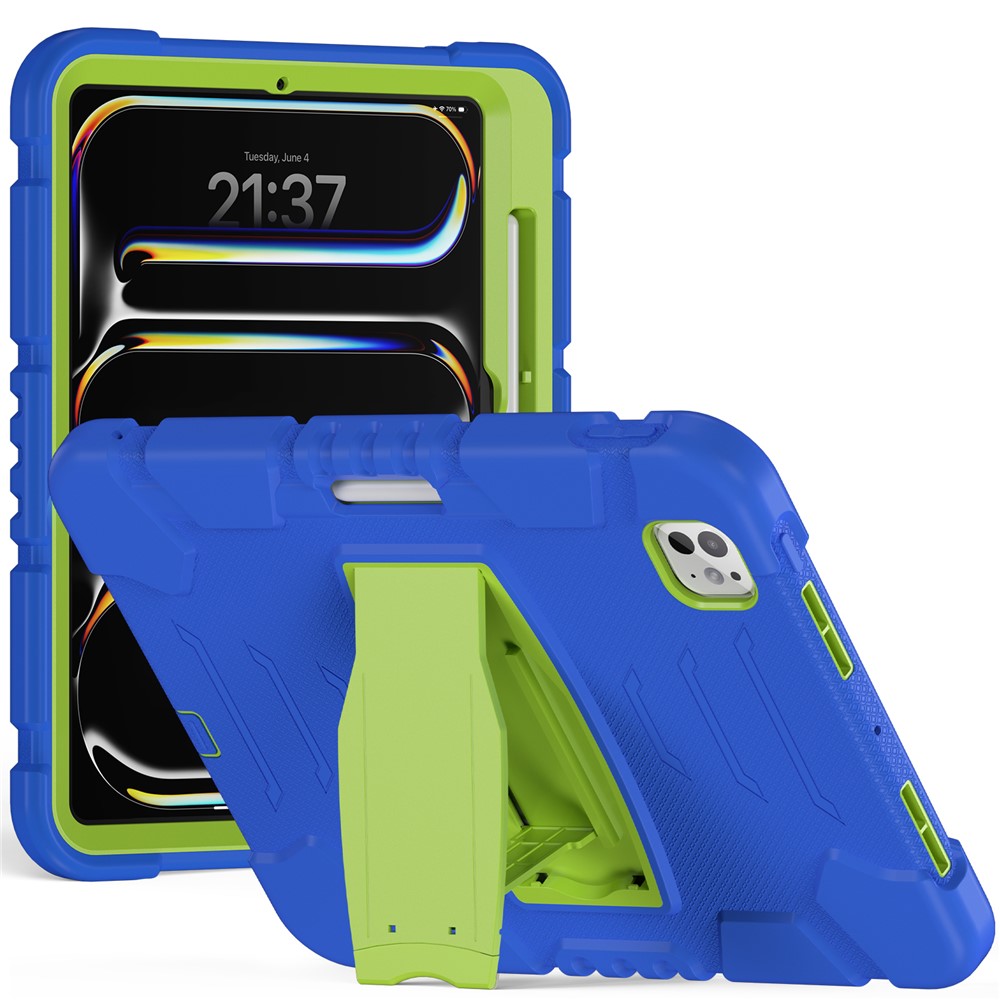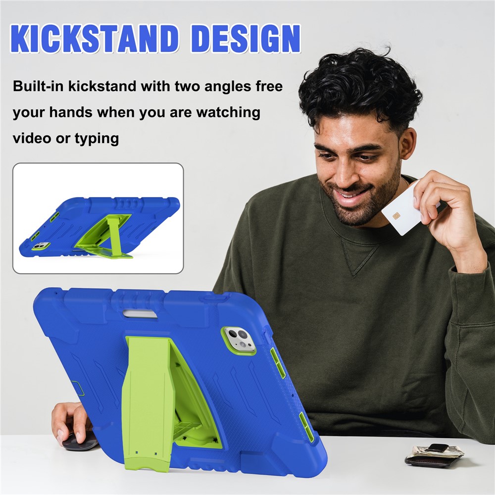 For iPad Pro 11 (2025) / 11 (2024) Case PC+Silicone Tablet Cover with Kickstand – Blue+Lime