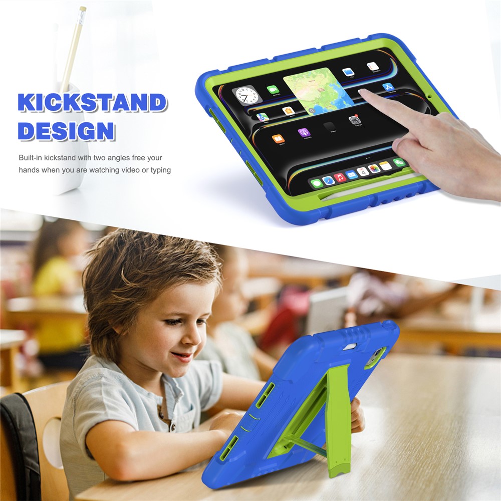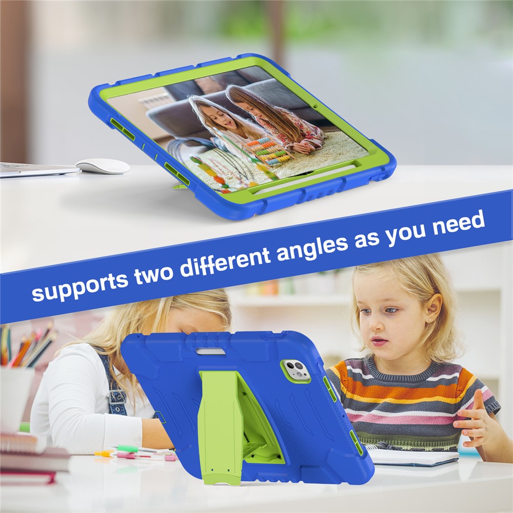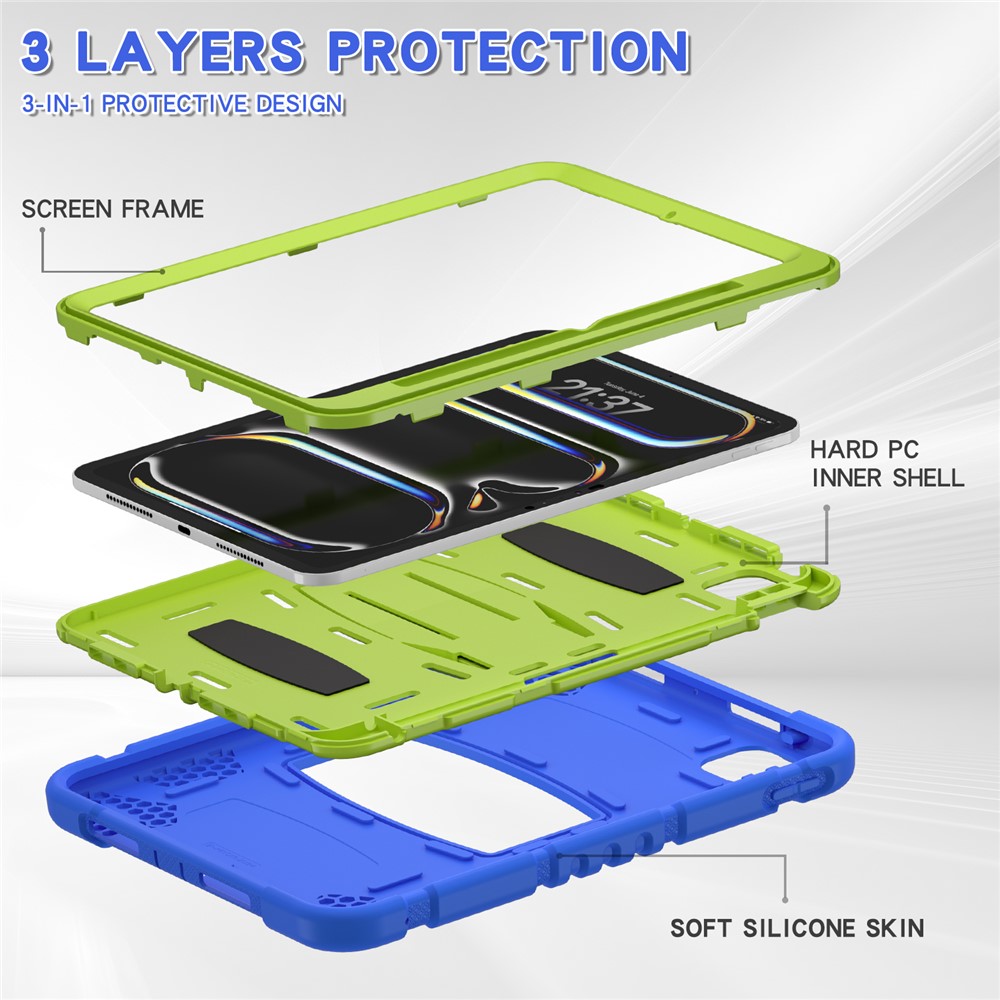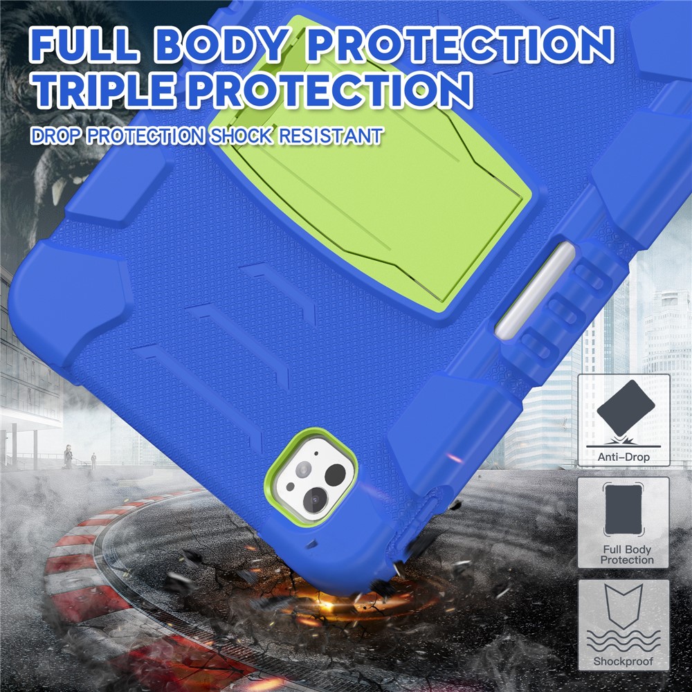 For iPad Pro 11 (2025) / 11 (2024) Case PC+Silicone Tablet Cover with Kickstand – Blue+Lime