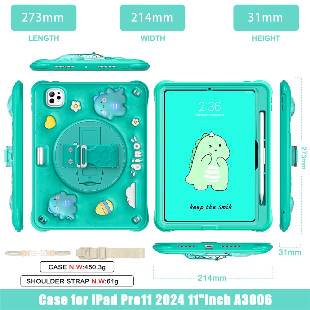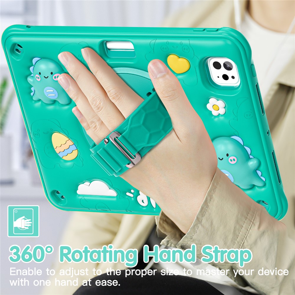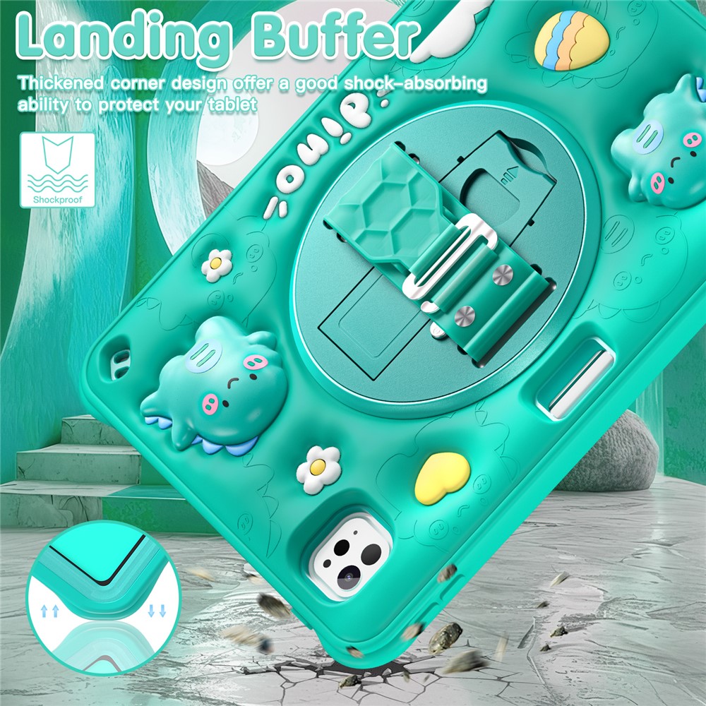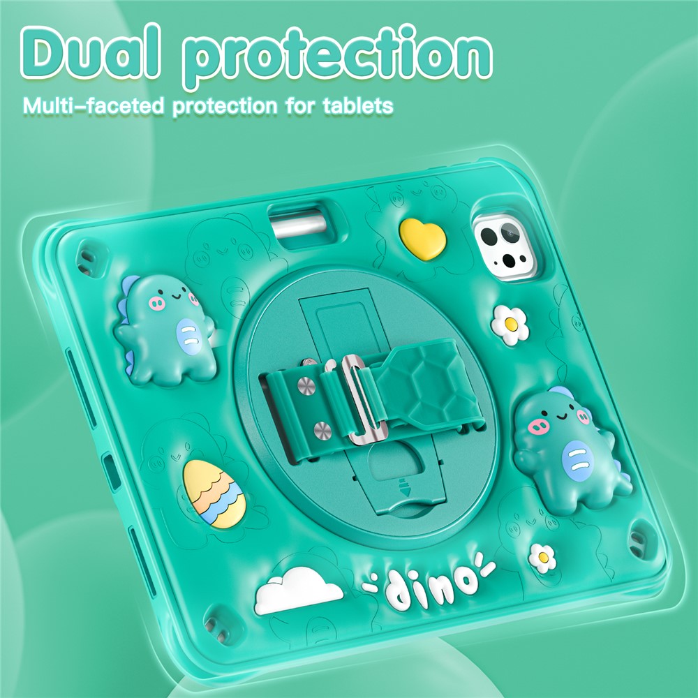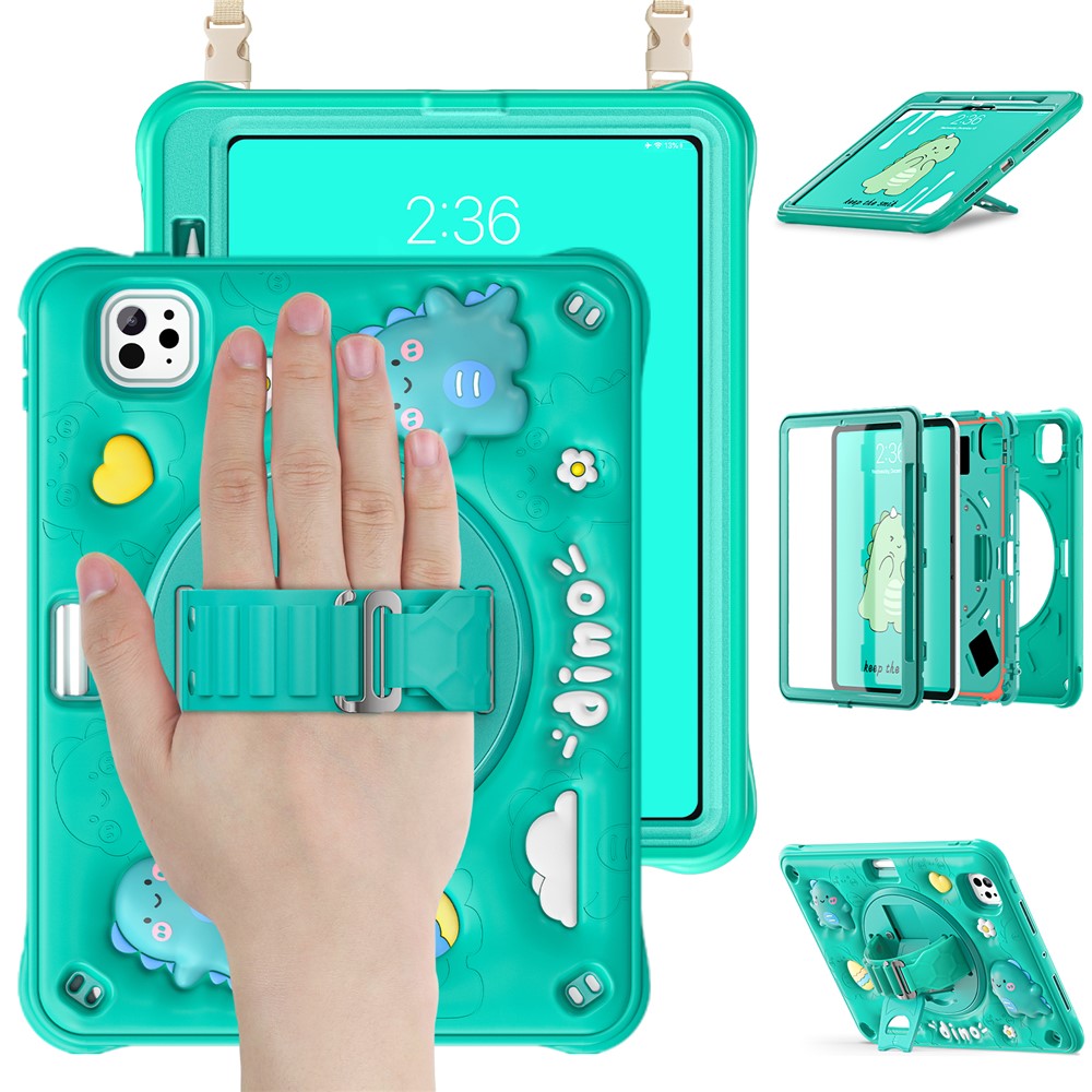For iPad Pro 11 (2025) / 11 (2024) Case with Shoulder Strap Cartoon Dinosaur Kickstand PC+Silicone+TPU Cover