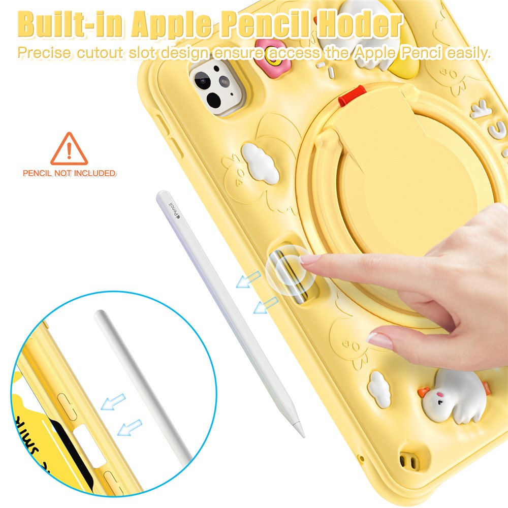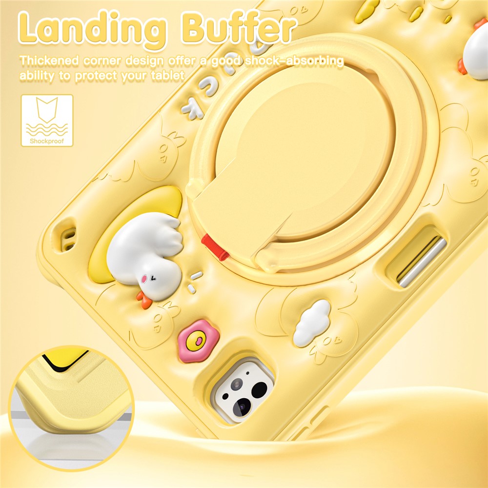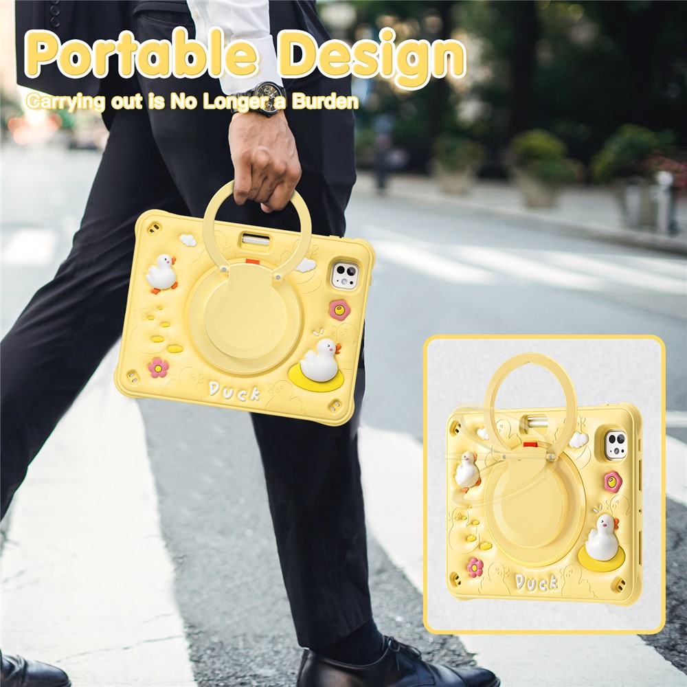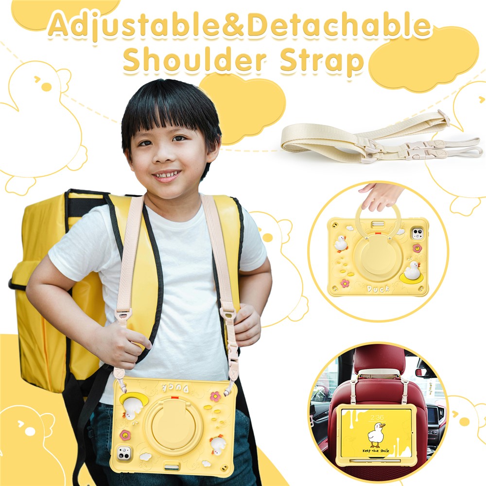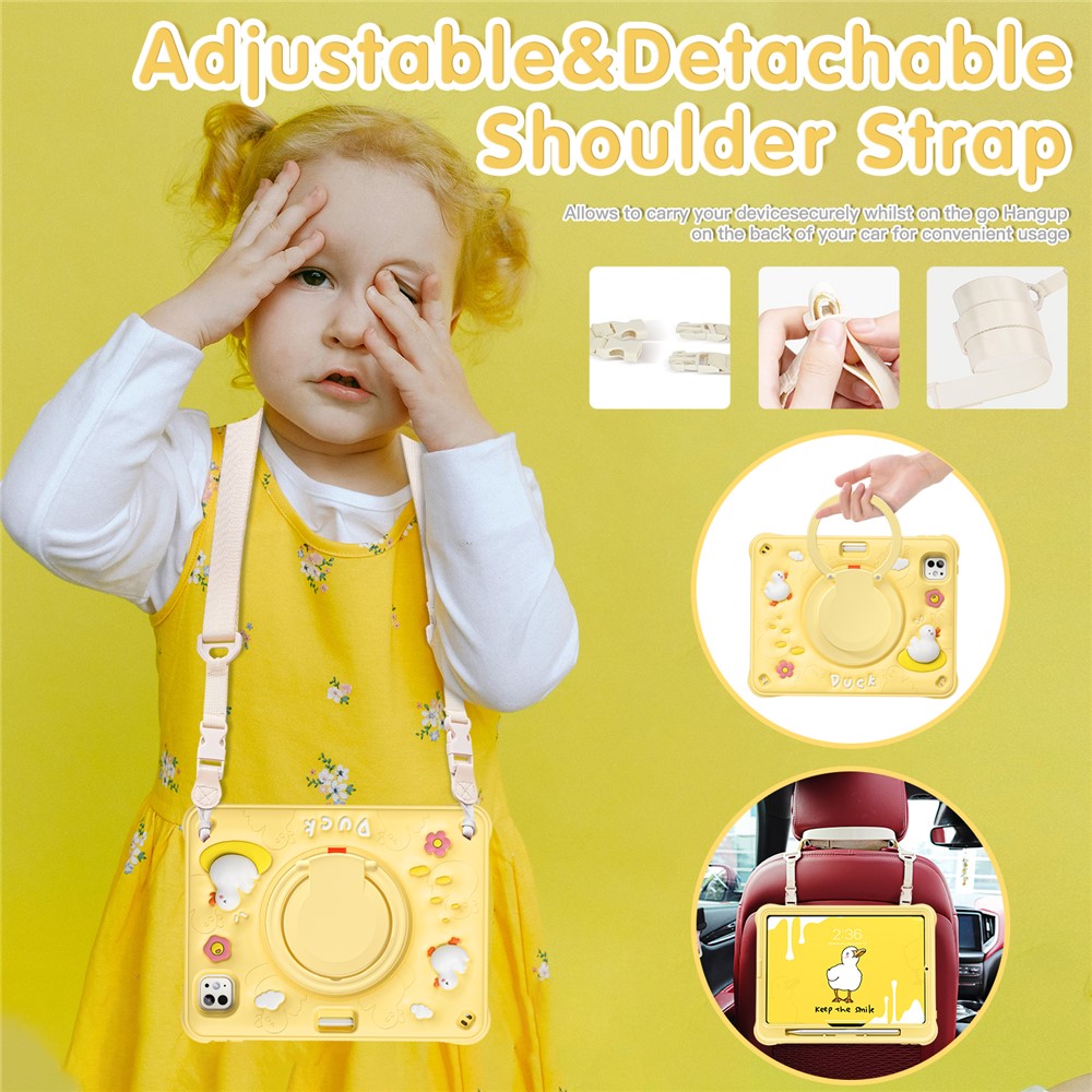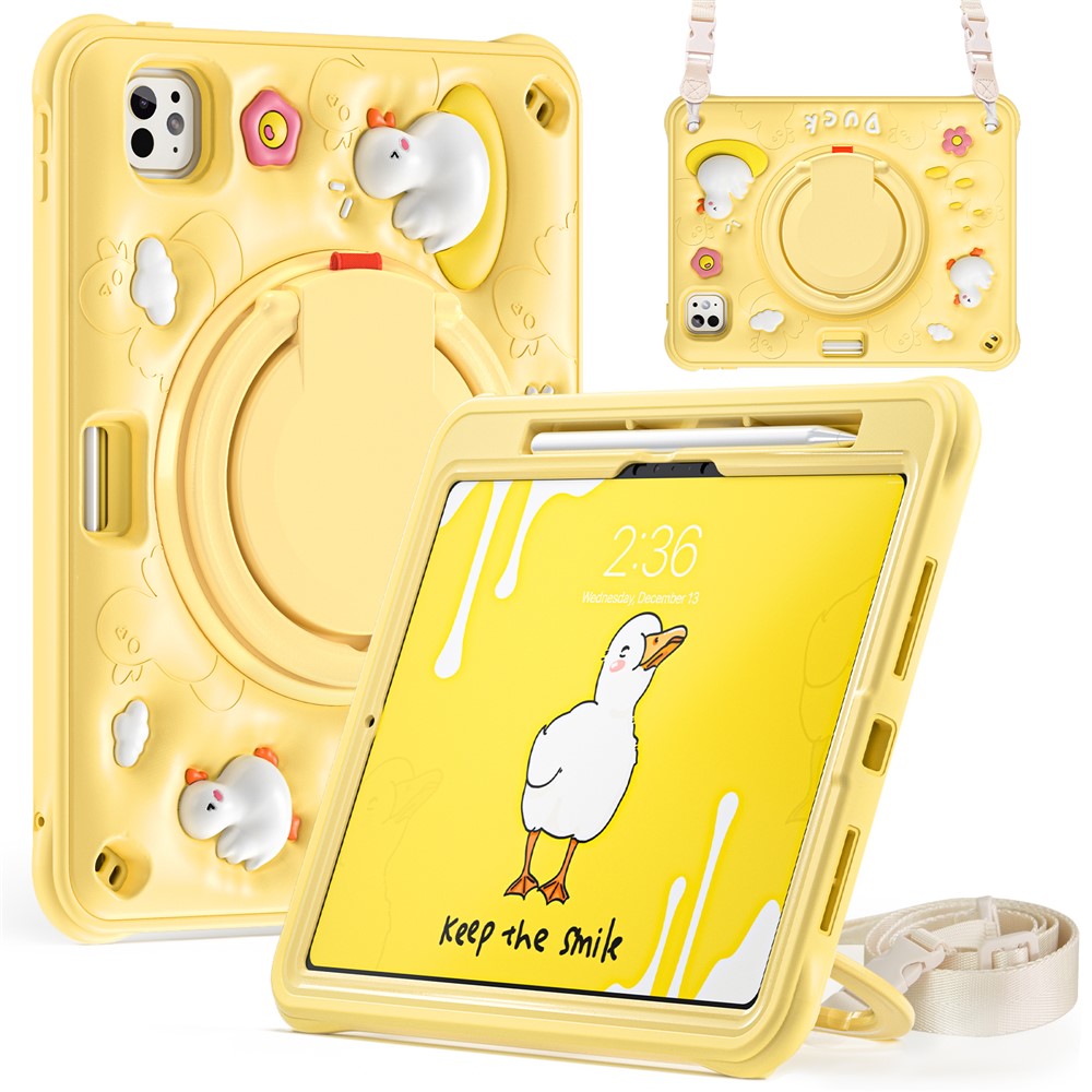 For iPad Pro 11 (2025) / 11 (2024) Case with Shoulder Strap Cartoon Duck Kickstand PC+Silicone+TPU Tablet Cover