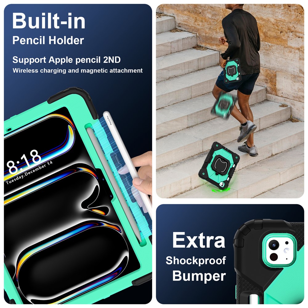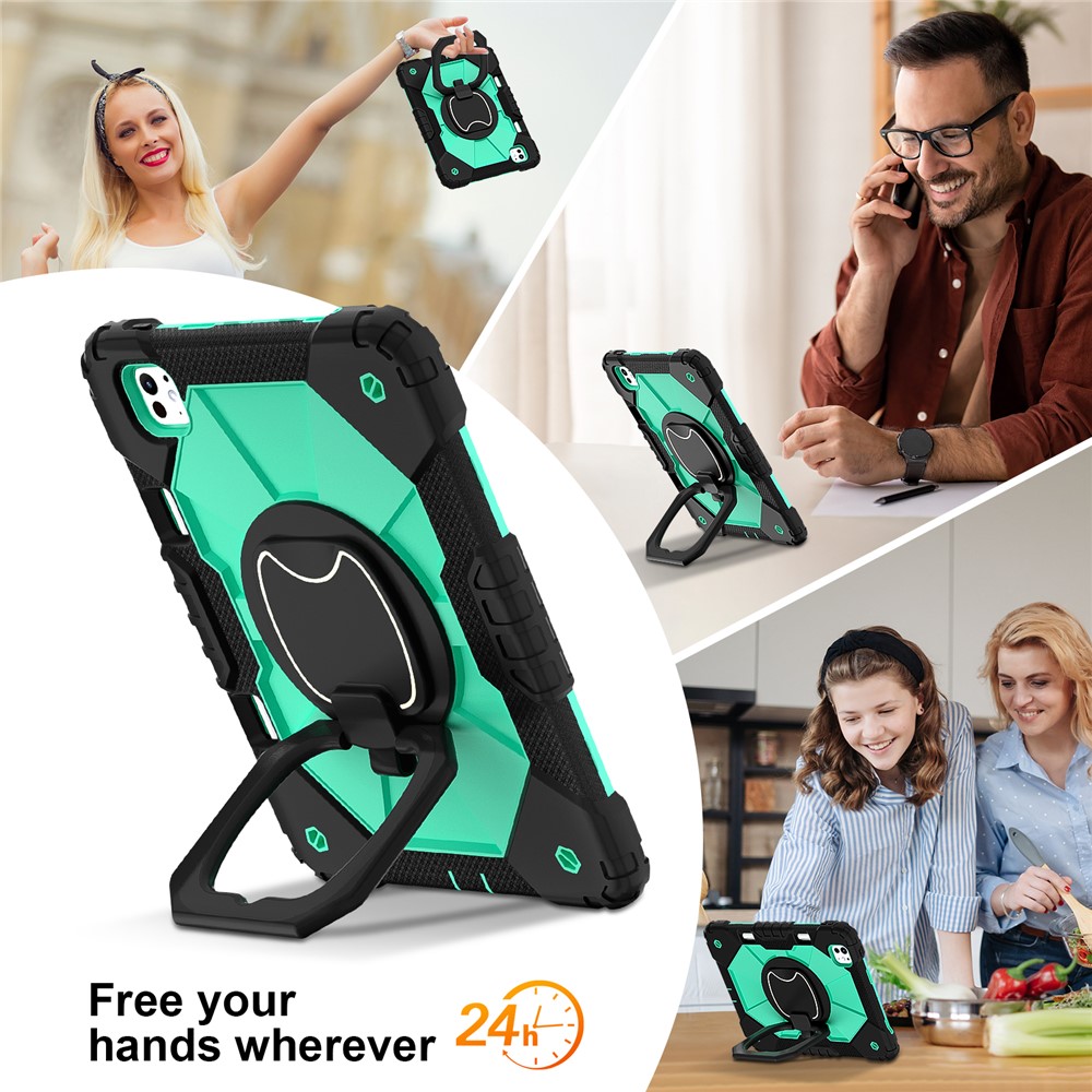 - 360-Degree Kickstand Features an integrated 360-degree rotary kickstand, allowing hands-free viewing in both landscape and portrait modes, not only a kickstand, but also is a portable strap