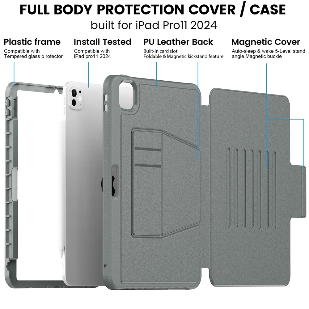 - Card Slots and Built-in Pencil Holder: The case includes convenient card slots, providing space to store your essential cards. Additionally, it comes with a built-in pencil holder, ensuring your stylus is always within reach