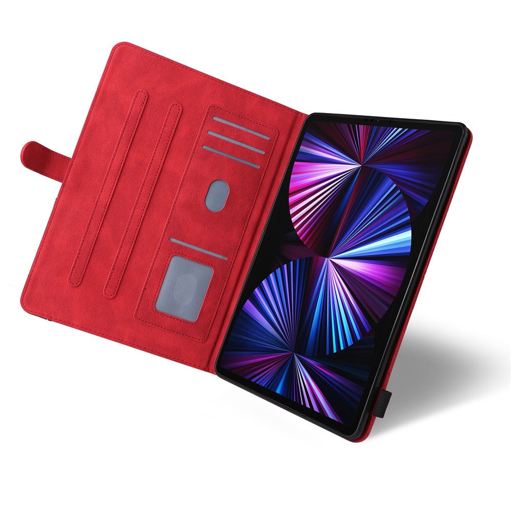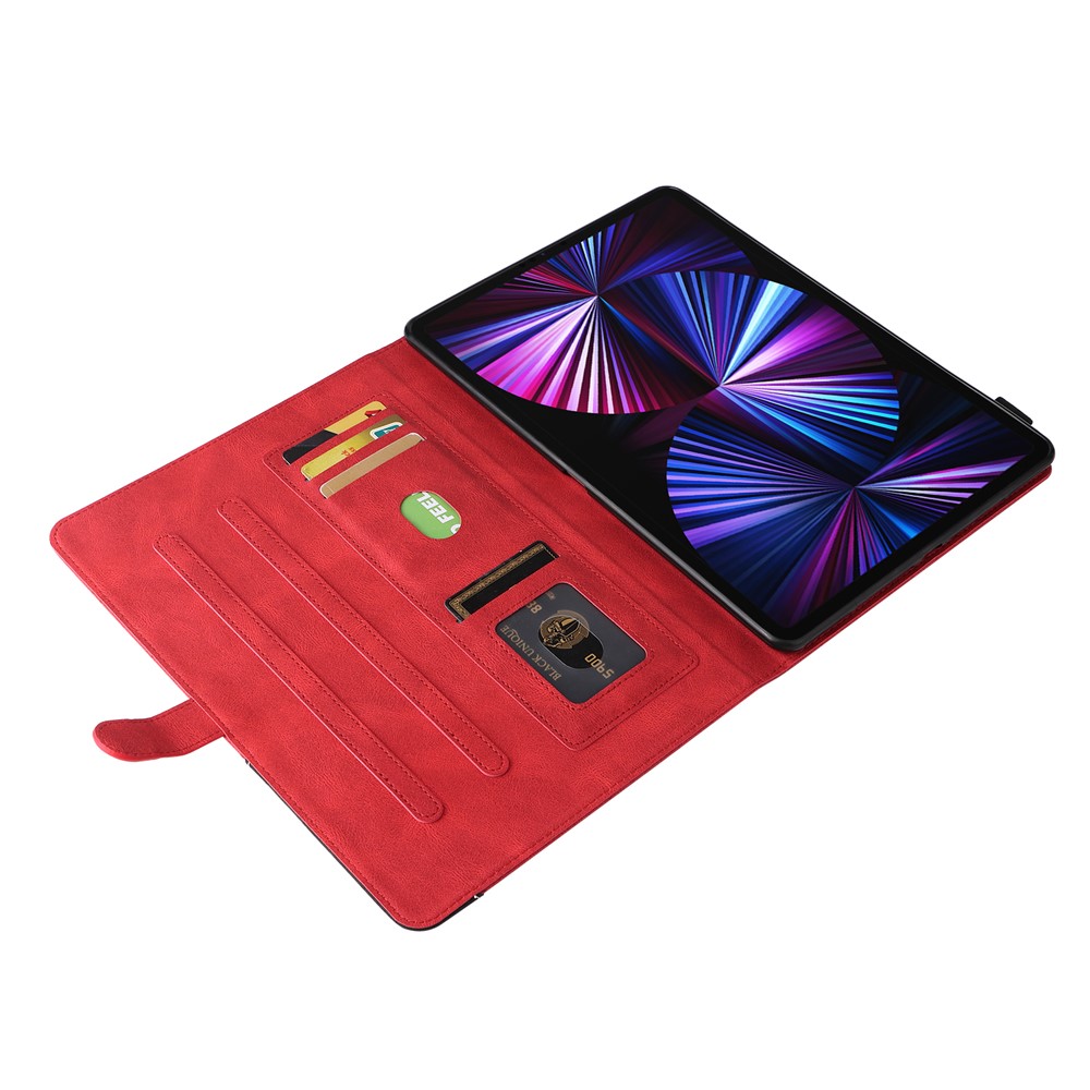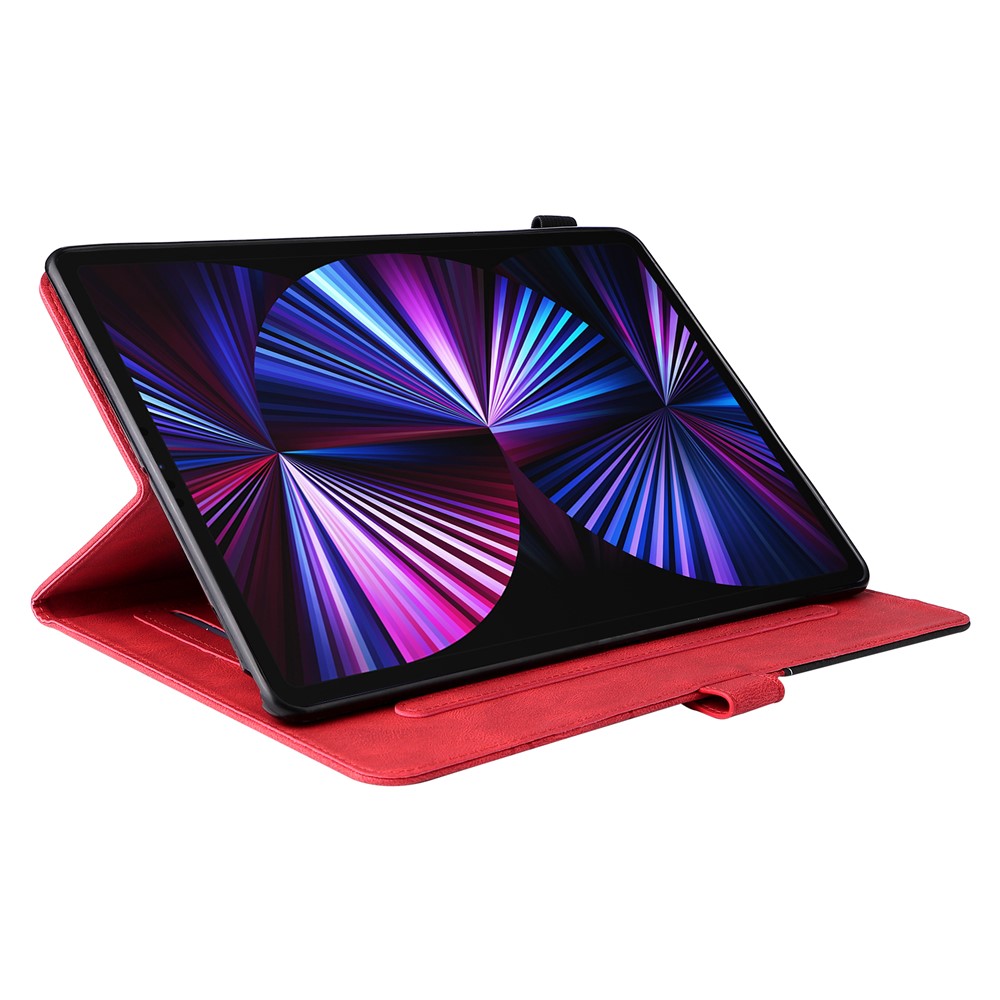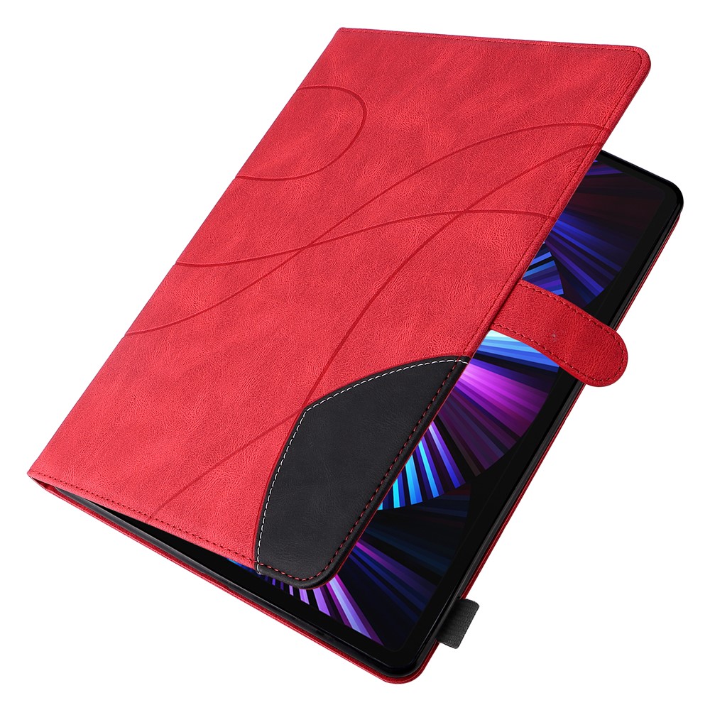 For iPad Pro 12.9 (2022) / (2021) / (2020) / (2018) Leather Case Wallet Stand Color Splicing Phone Cover – Red