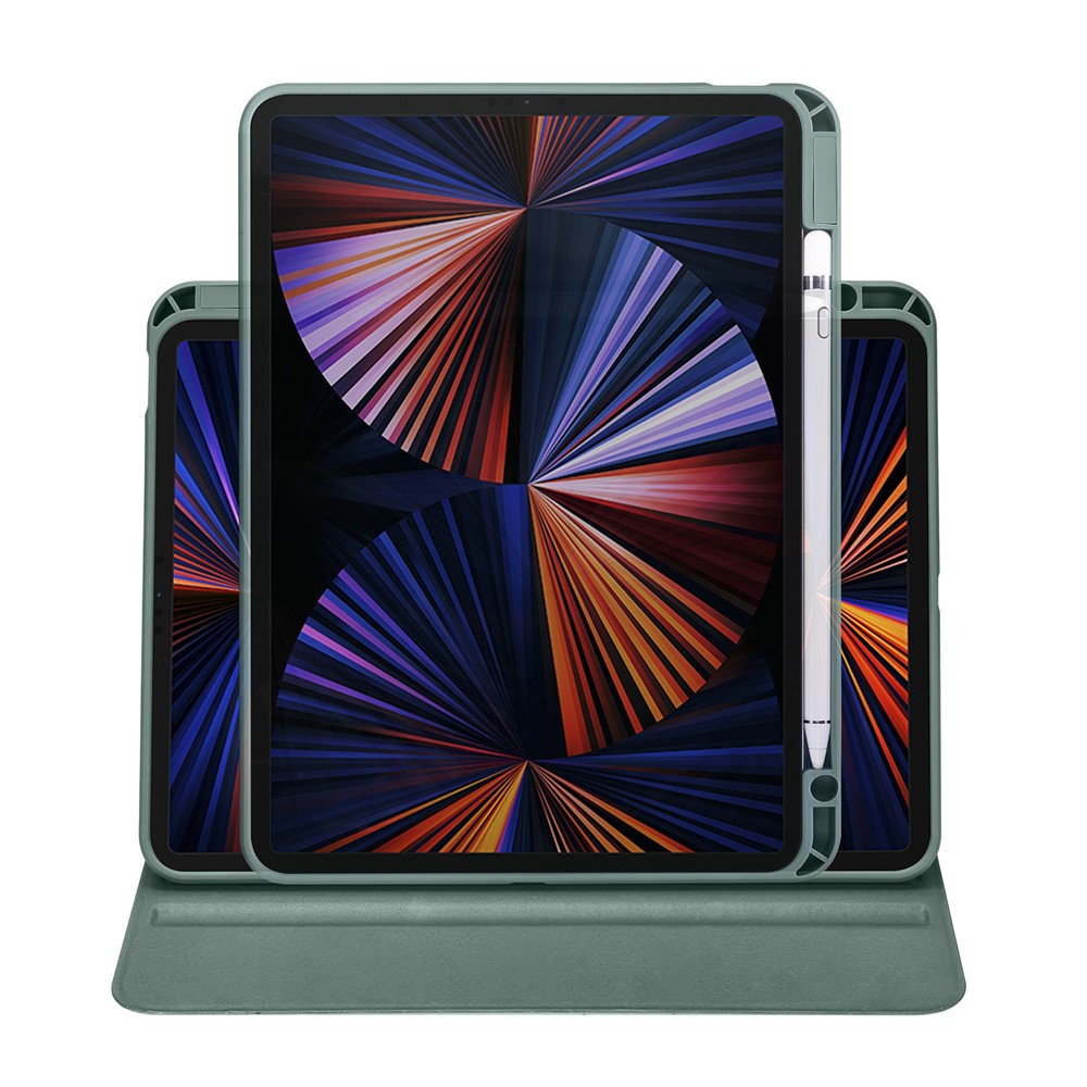 For iPad Pro 12.9-inch (2018) / (2020) / (2021) / (2022) PU Leather Cover Rotary Kickstand Acrylic Tablet Case with Pen Holder – Blackish Green