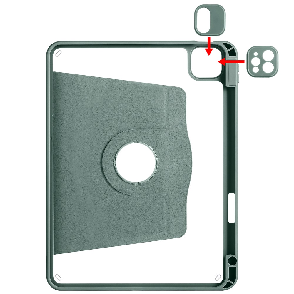 For iPad Pro 12.9-inch (2018) / (2020) / (2021) / (2022) PU Leather Cover Rotary Kickstand Acrylic Tablet Case with Pen Holder - Blackish Green $31.55