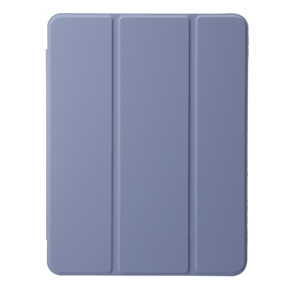 For iPad Pro 12.9-inch (2018) / (2020) / (2021) / (2022) Trifold Stand Tablet Case PU Leather + Clear Acrylic Shell – Purple