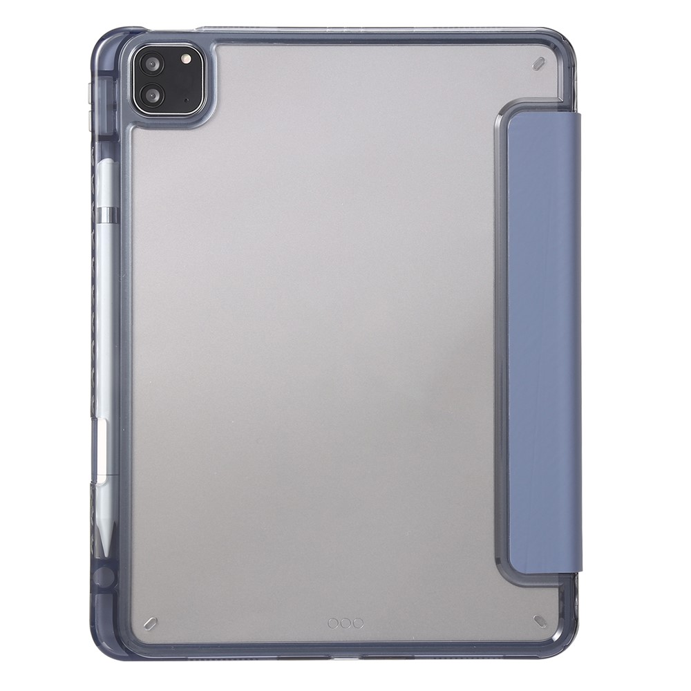 • For iPad Pro 12.9-inch (2018) / (2020) / (2021) / (2022) Trifold Stand Tablet Case PU Leather + Clear Acrylic Shell - Baby Blue
