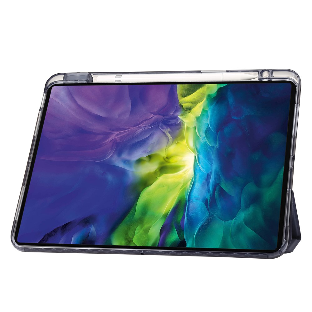 • For iPad Pro 12.9-inch (2018) / (2020) / (2021) / (2022) Trifold Stand Tablet Case PU Leather + Clear Acrylic Shell - Black
