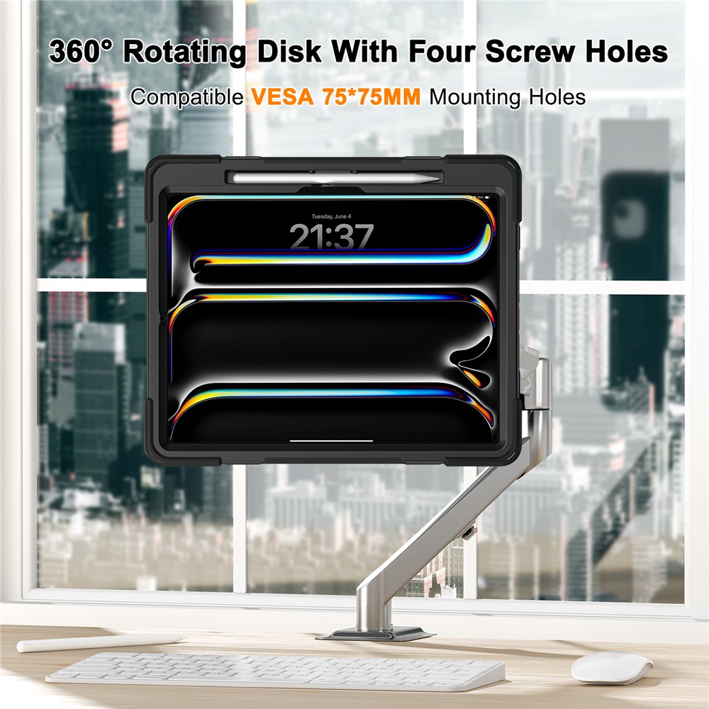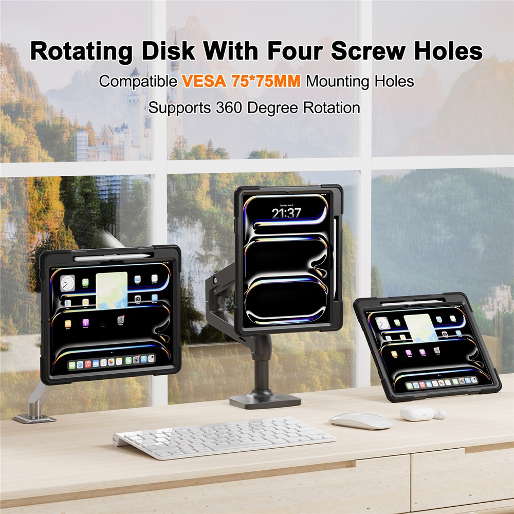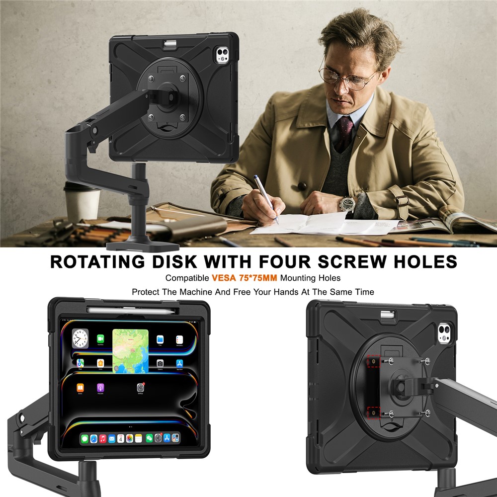 - Compatible with VESA This case is equipped with 75 x 75mm mounting holes, making it easy to attach to compatible arms or wall mounts (not included) for versatile usage in various environments