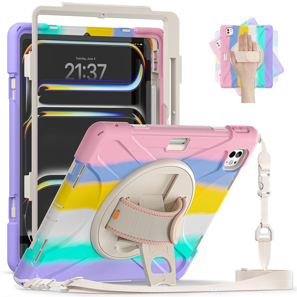 - 360 Degree Rotation Kickstand Secure your hand with an adjustable hand strap and rotate your device 360 degrees for versatile viewing and handling