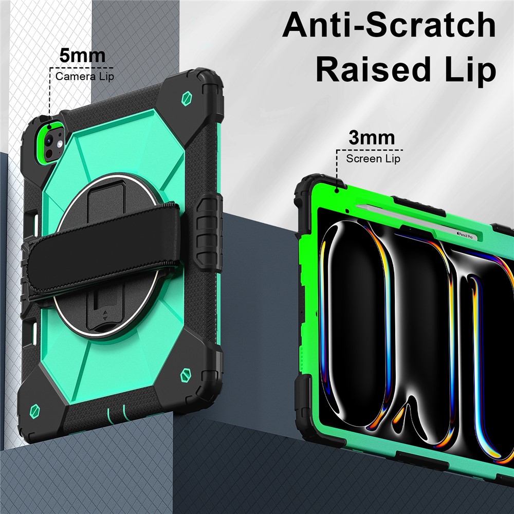 - Folding Kickstand & Hand Strap Features an integrated folding kickstand, allowing hands-free viewing; There is a handy strap on the back of the case, supporting 360-degree rotating, and you can hold your tablet in one hand