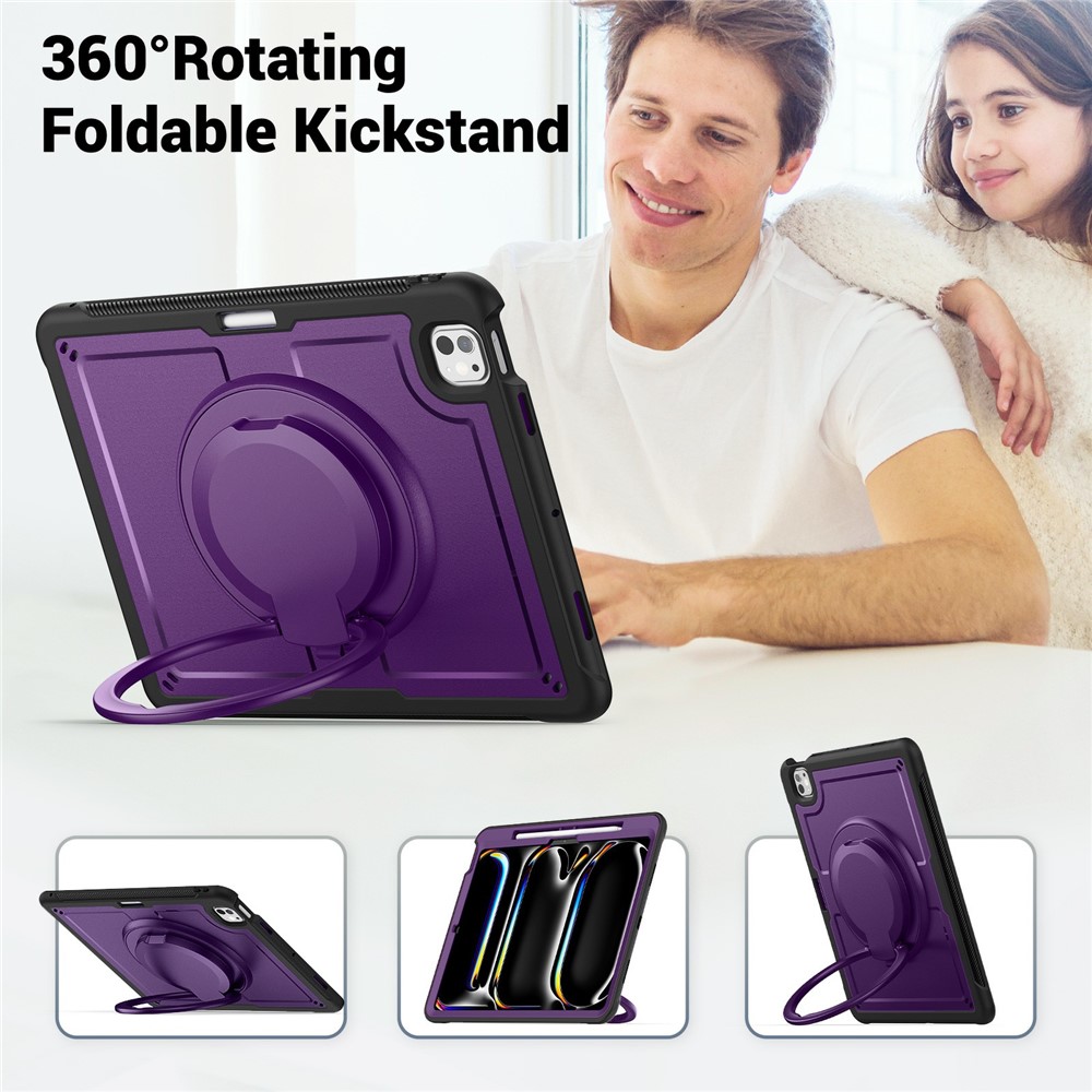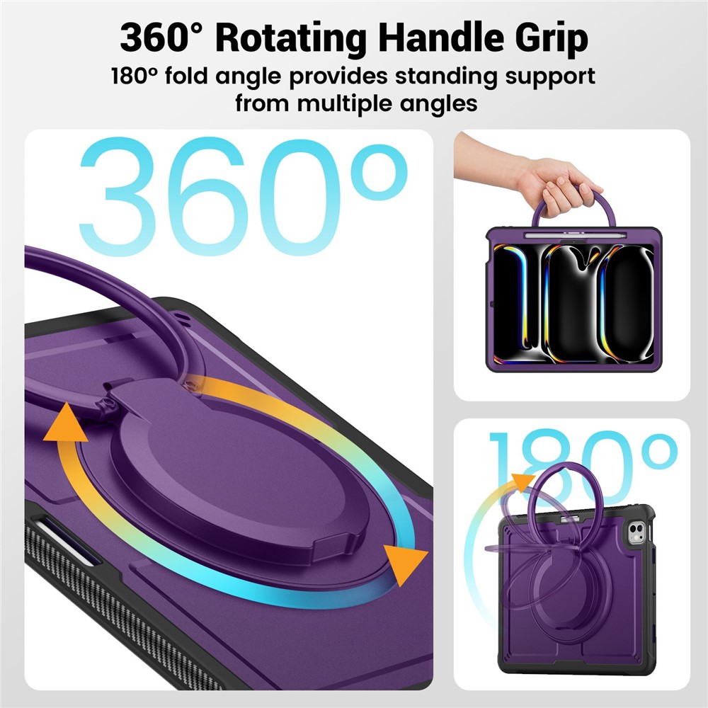 - 360° Rotating Kickstand & Portatble Handle Features a multifunctional handle that doubles as a 360° rotating kickstand, allowing for easy carrying and convenient hands-free viewing at various angles