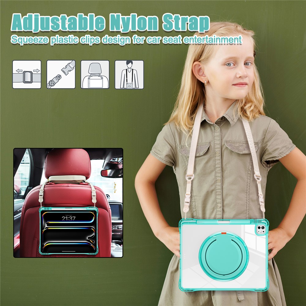 - Adjustable Nylon Strap The adjustable nylon strap provides versatility and comfort, allowing you to easily carry your tablet over the shoulder or around the neck