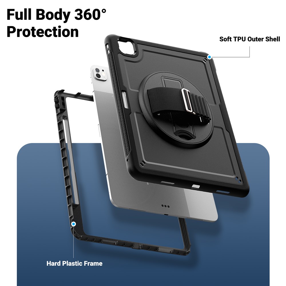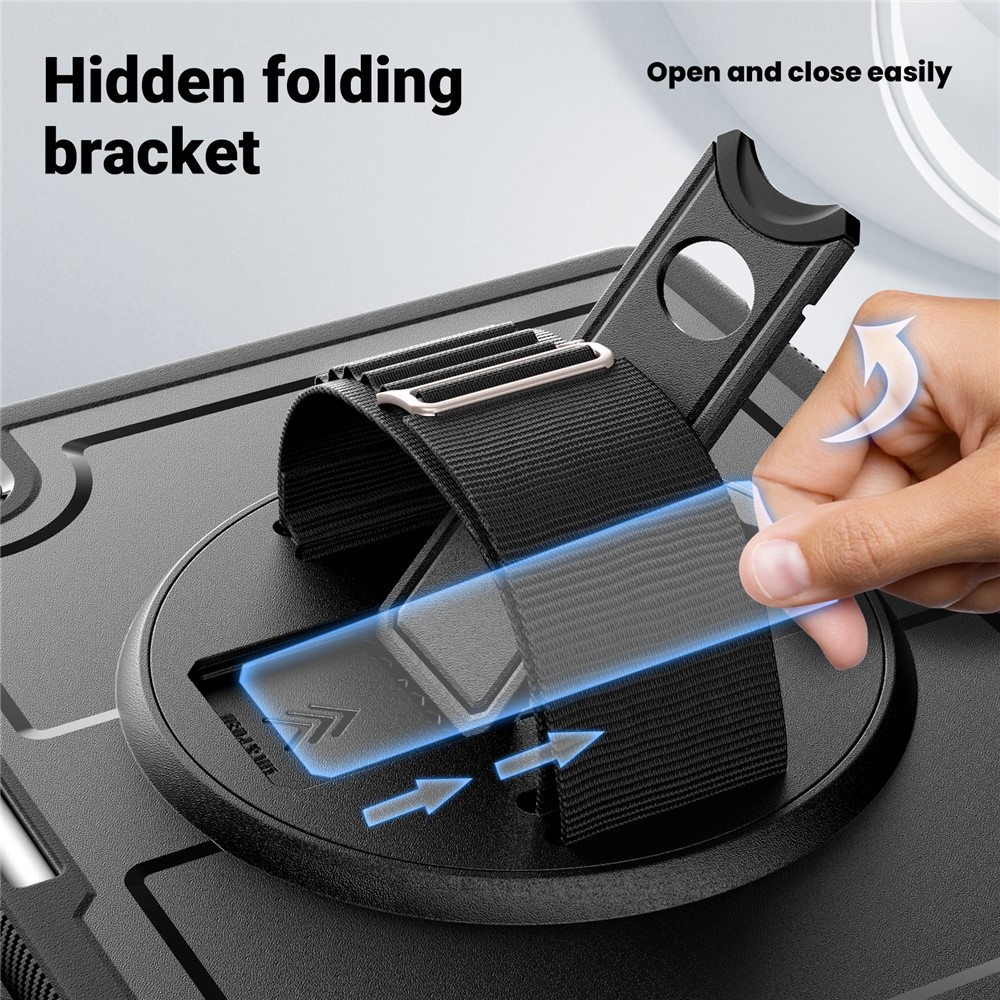 - 360° Rotating Kickstand: Features a 360° rotating multi-angle hidden foldable kickstand with a hand strap for added convenience and usability
