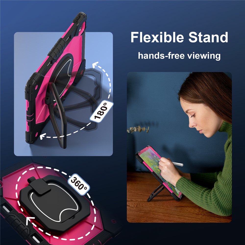 - 360-Degree Kickstand Features an integrated 360-degree rotary kickstand, allowing hands-free viewing in both landscape and portrait modes, not only a kickstand, but also is a portable strap