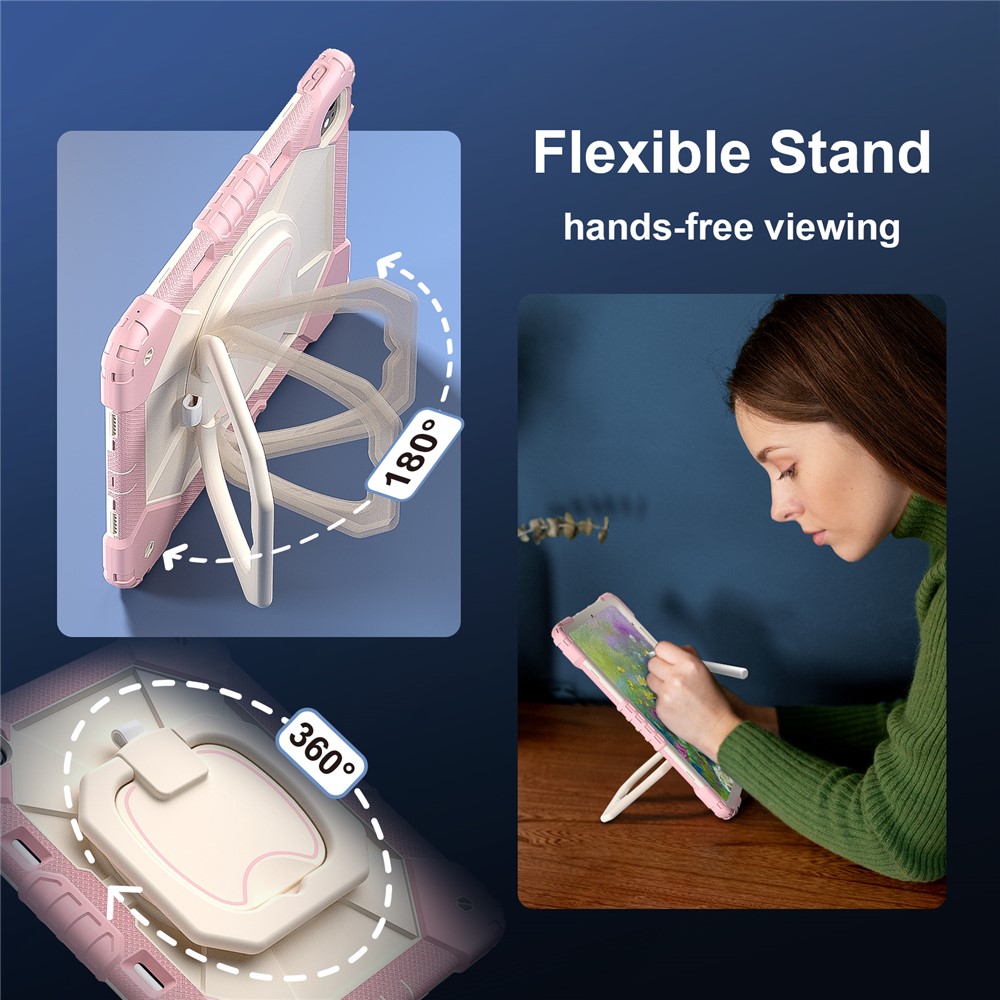 - 360-Degree Kickstand Features an integrated 360-degree rotary kickstand, allowing hands-free viewing in both landscape and portrait modes, not only a kickstand, but also is a portable strap