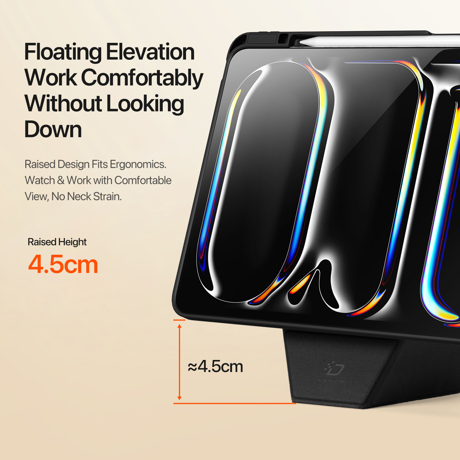 - Floating Elevation Design Innovative folding stand elevates the tablet by about 4.5 cm, providing ergonomic viewing without neck strain.