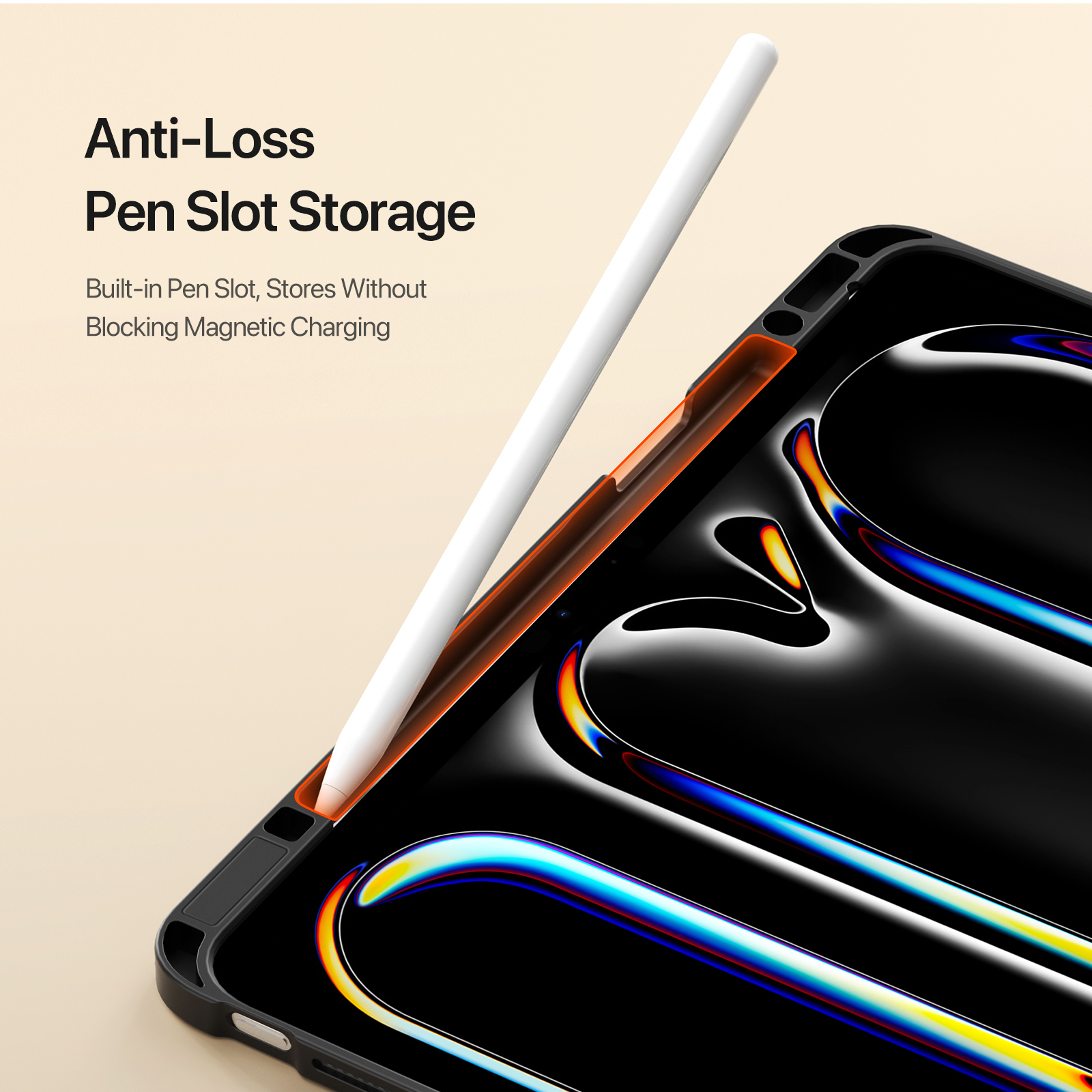 - Built-in Pen Slot Comes with an anti-loss pen holder that secures your stylus without blocking magnetic charging.