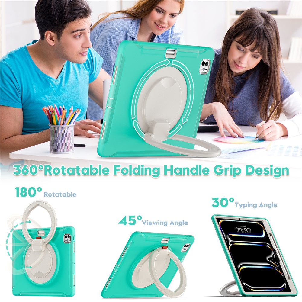 - 360-Degree Rotatable Hand Grip Kickstand: The handle grip design offers a full 360-degree rotation, allowing you to adjust it to the perfect viewing or typing angle effortlessly