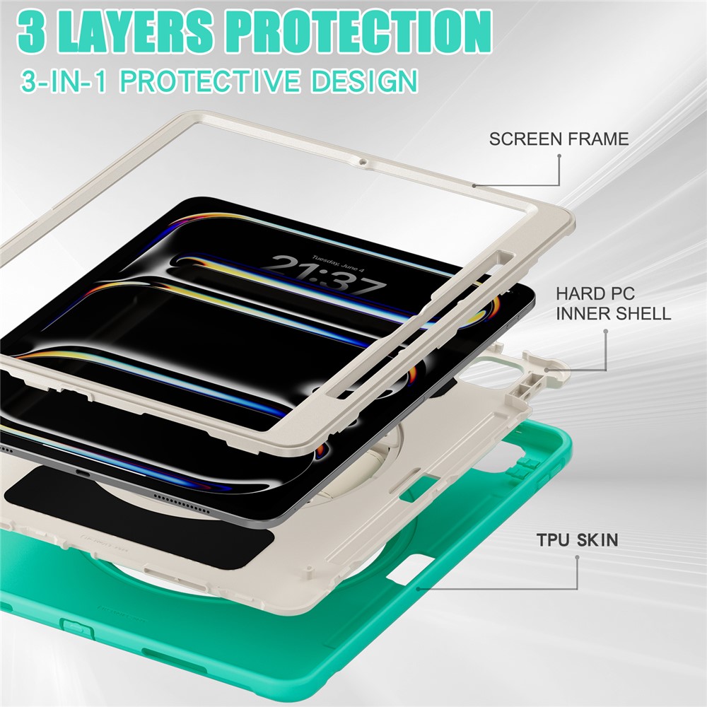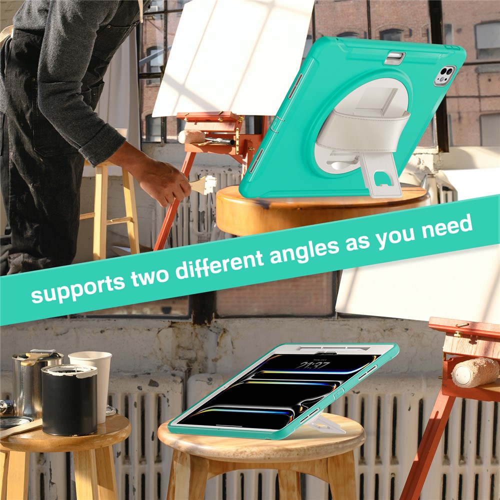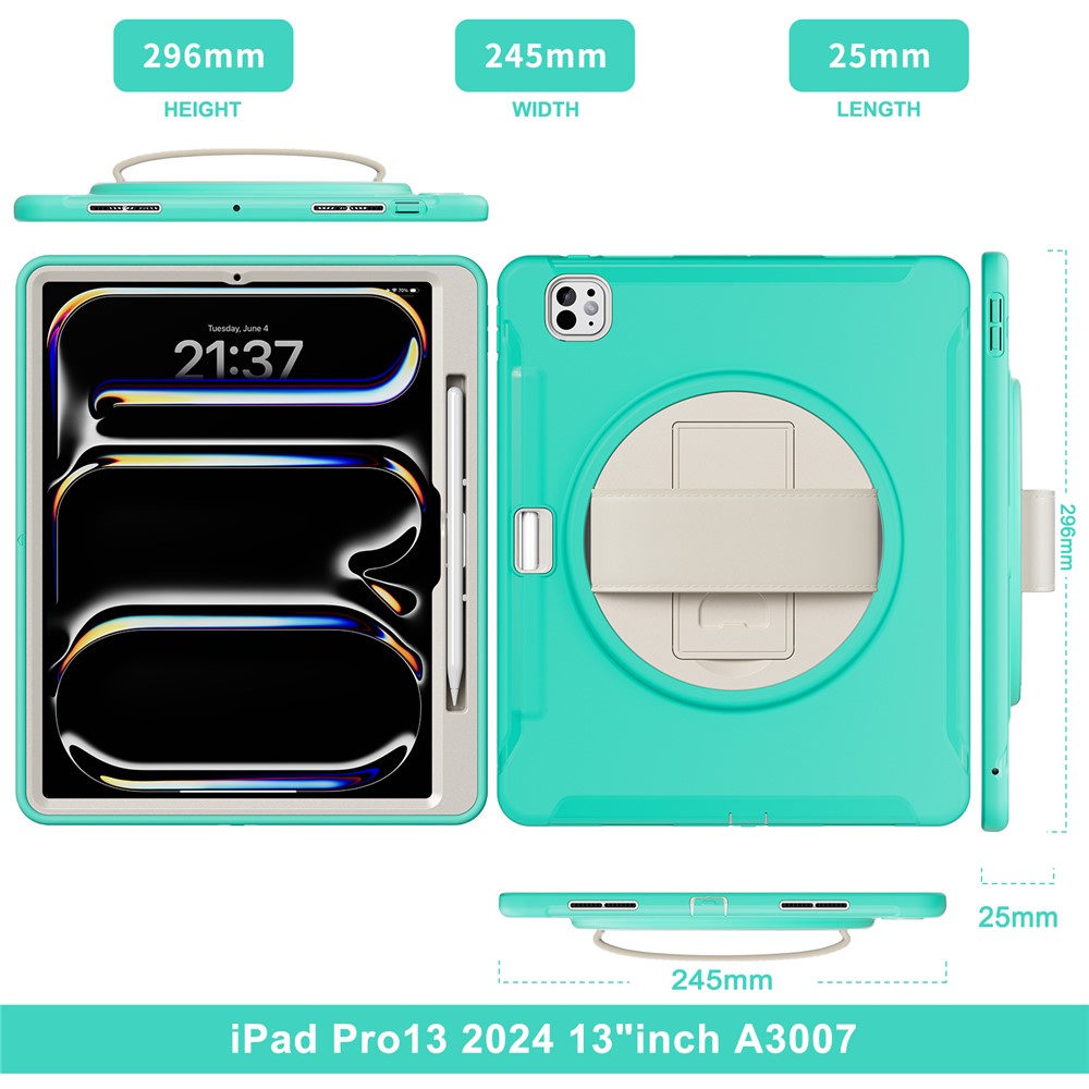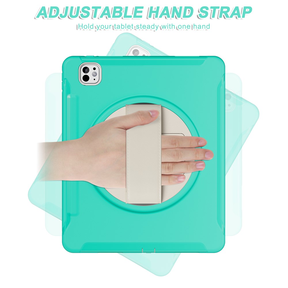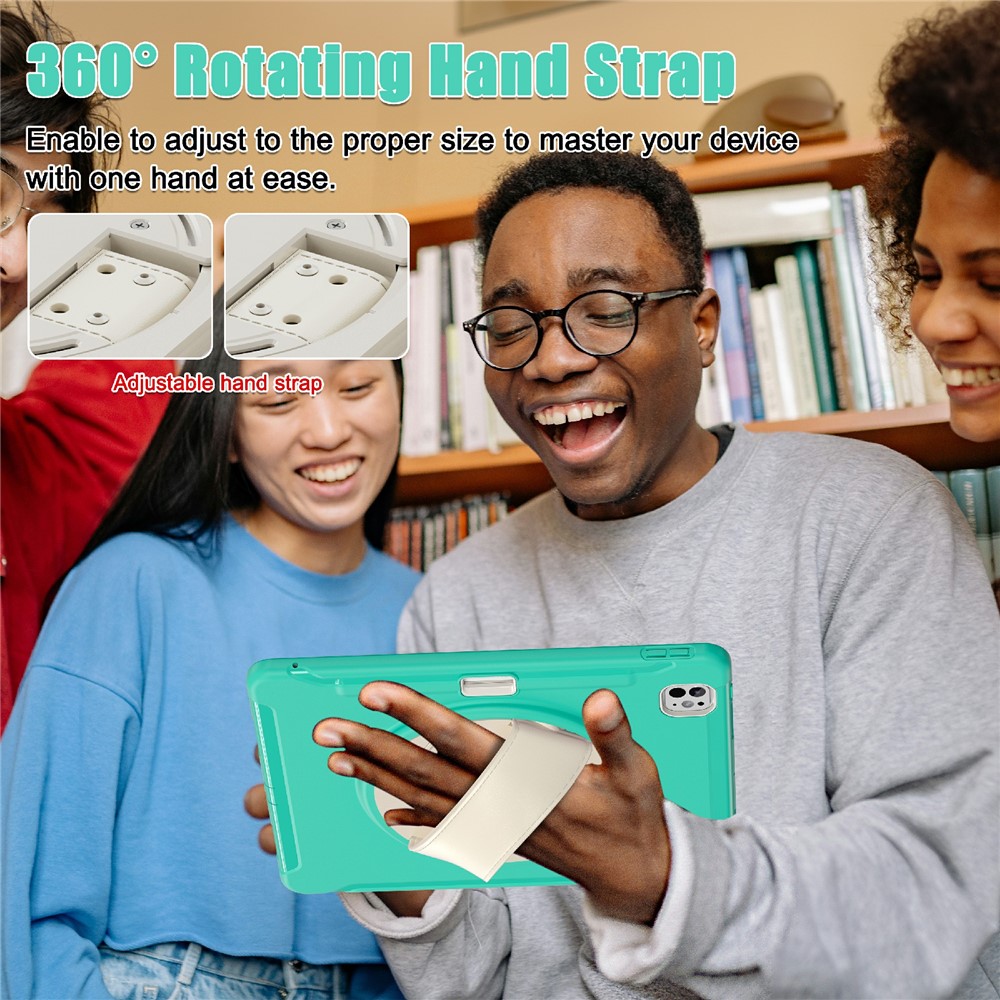 - 360 Degree Rotating Hand Strap Equipped with a 360-degree rotating hand strap, this case allows you to adjust it to the perfect size, making it easy to manage your device with one hand for various tasks