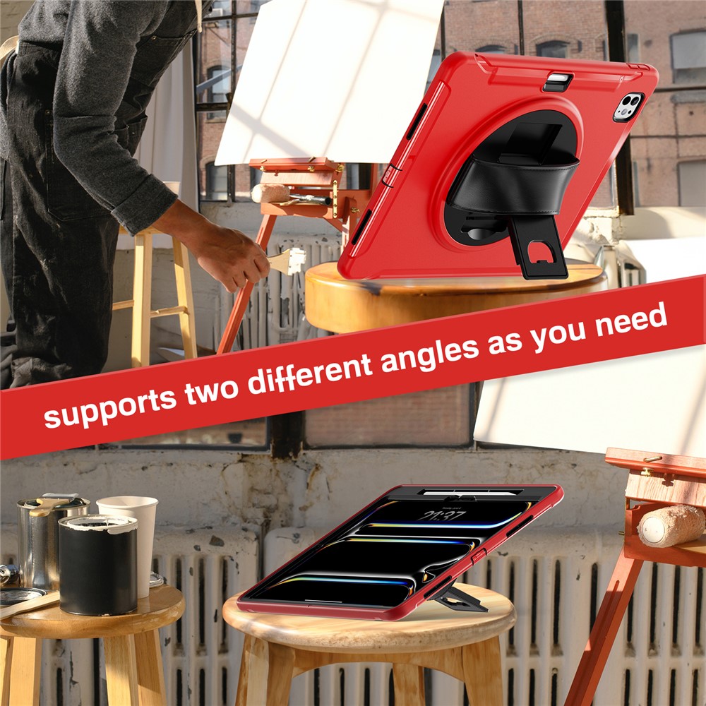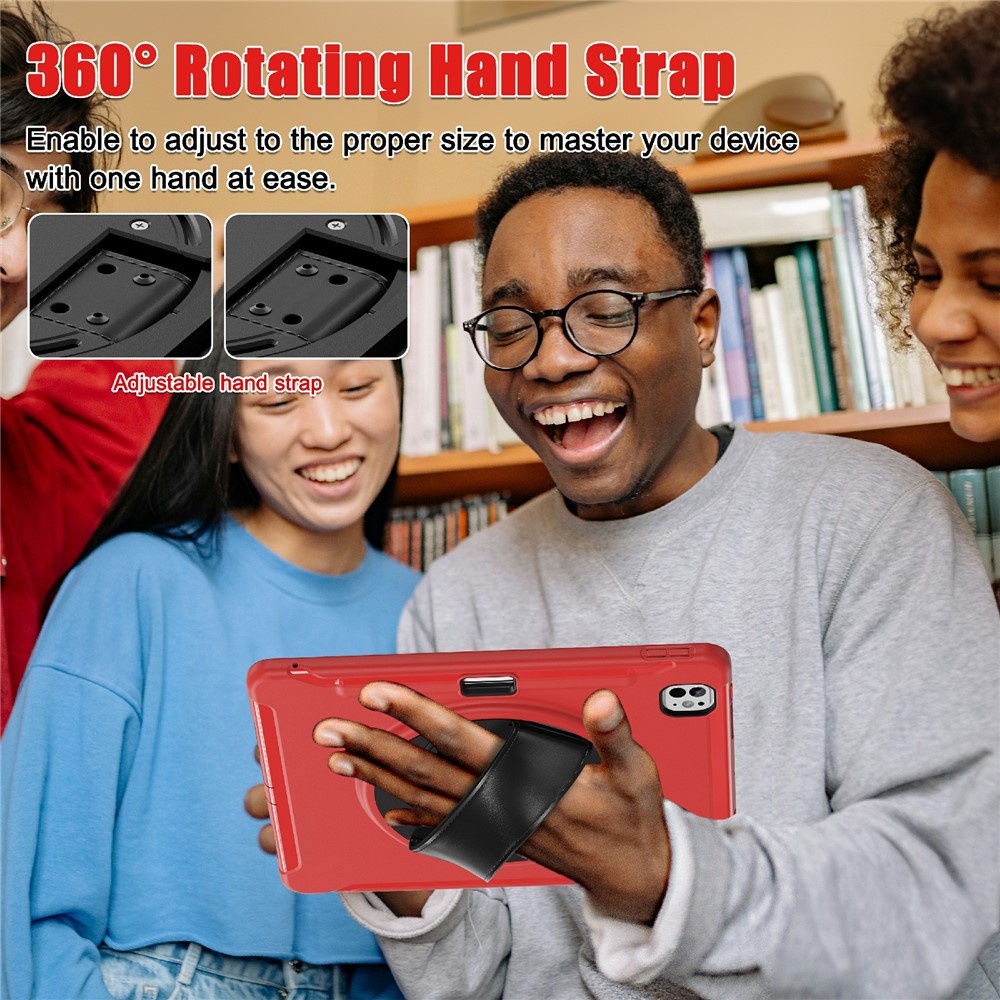 - 360 Degree Rotating Hand Strap Equipped with a 360-degree rotating hand strap, this case allows you to adjust it to the perfect size, making it easy to manage your device with one hand for various tasks