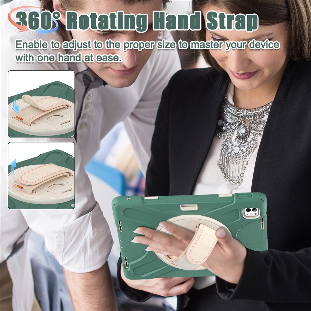 - 360 Degree Rotating Hand Strap The case comes with a 360° rotating hand strap, allowing you to adjust it to the proper size for one-handed use. This feature provides ease and stability while handling your device