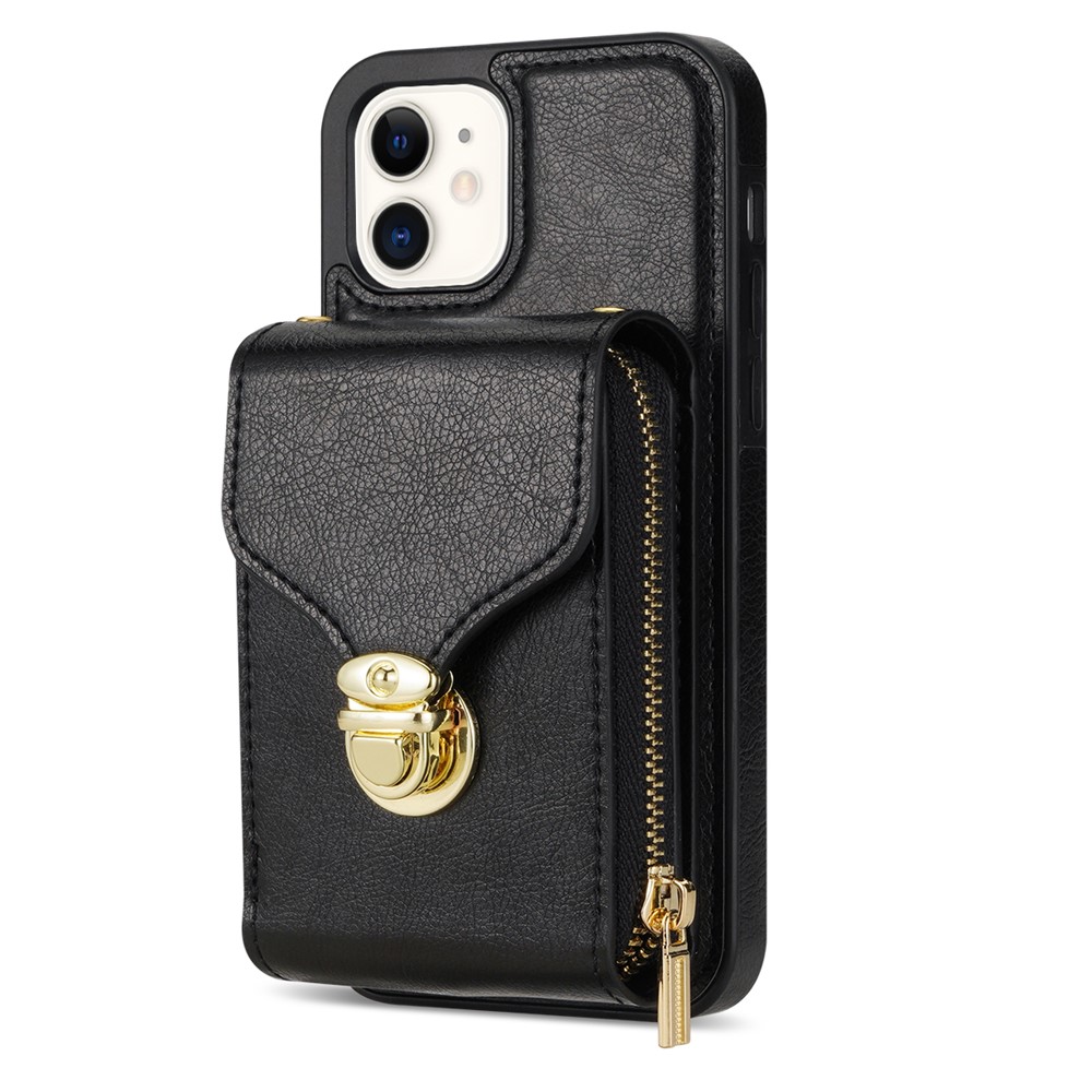 For iPhone 11 6.1 inch PU Leather Coated TPU Card Slot Phone Case Kickstand Crossbody Zipper Cover - Black $21.36