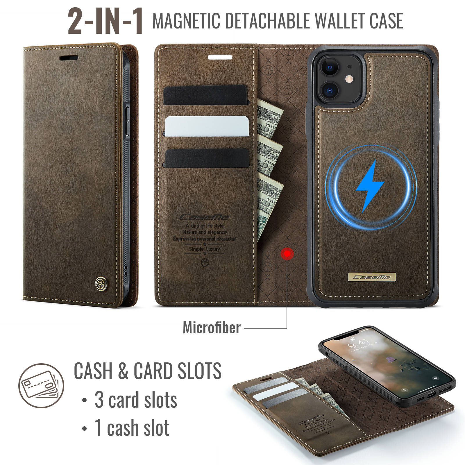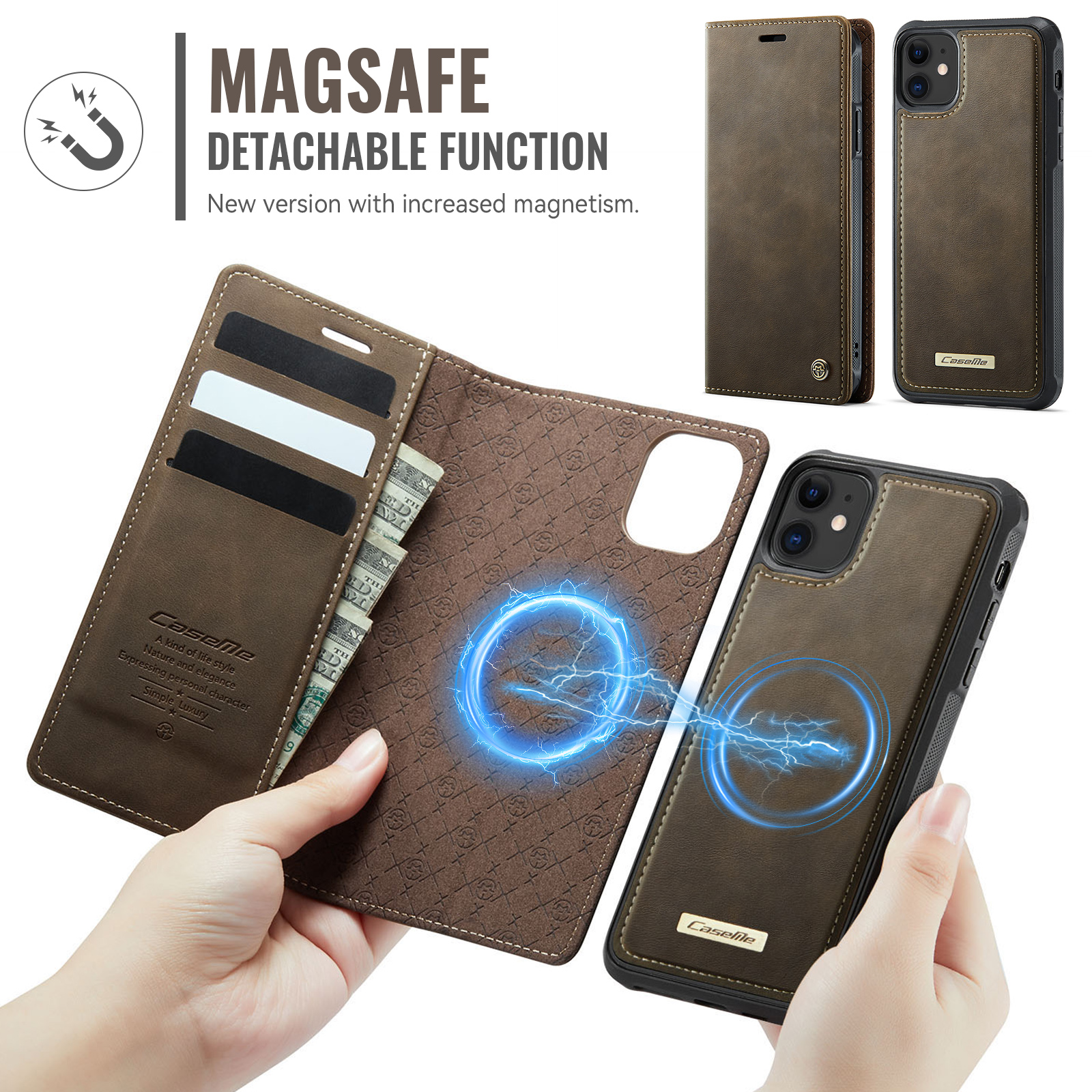 - Magnetic Detachable Wallet Design Built-in 3 card slots, and a cash pocket for credit cards, IDs, and cash. Magnetic detachable 2-in-1 design, can be used as a single shell or as a leather case