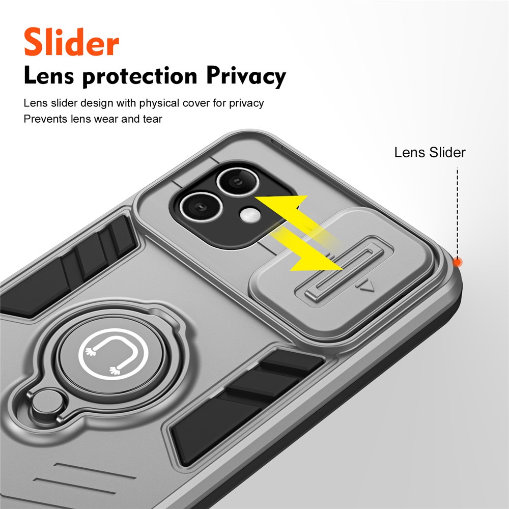 - Lens Protection Slider The case features a unique sliding cover over the camera lens, designed to shield the lens from scratches and provide extra privacy when needed